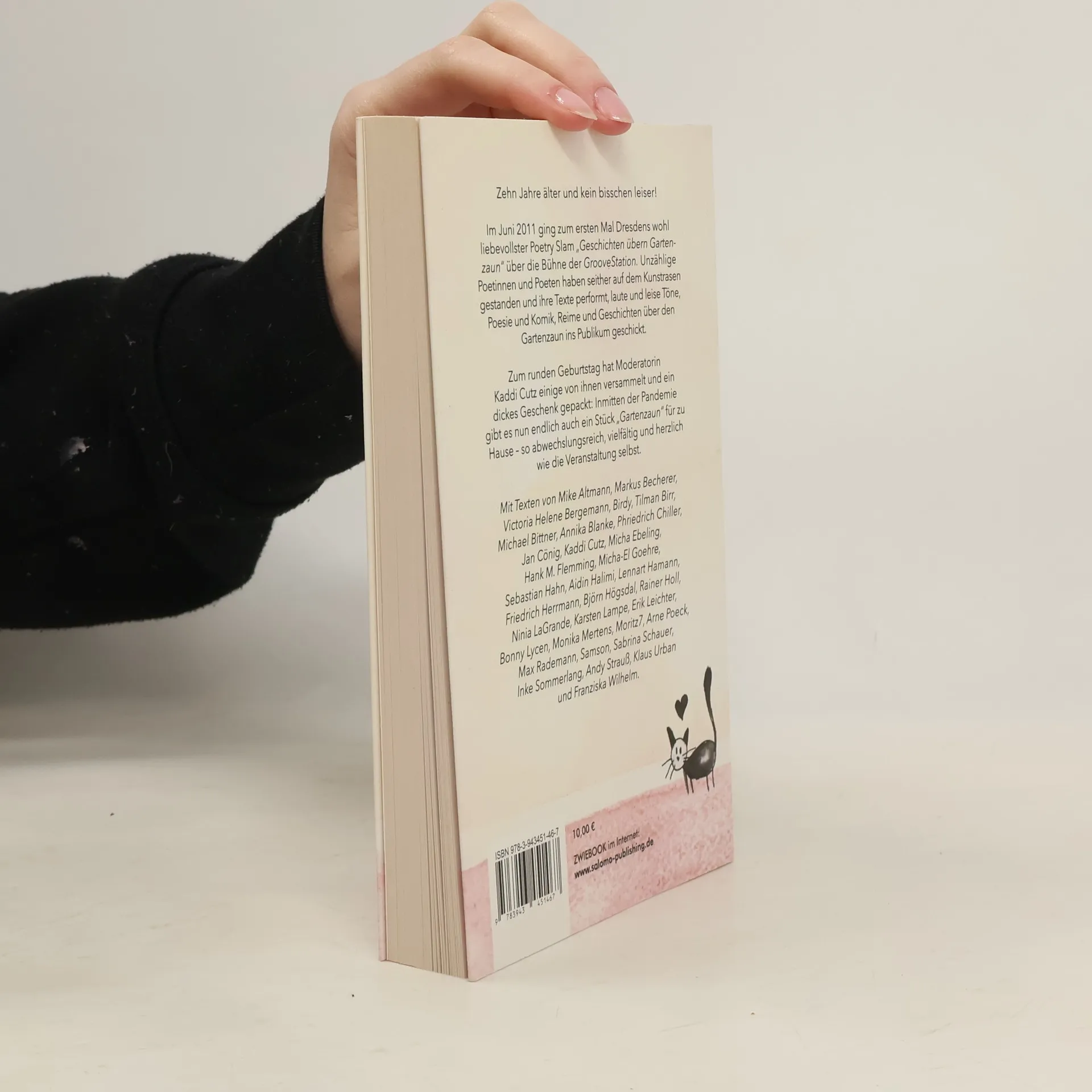 Zehn Jahre älter und kein bisschen leiser! Im Juni 2011 ging zum ersten Mal Dresdens wohl liebevollster Poetry Slam "Geschichten übern Gartenzaun" über die Bühne der GrooveStation. Unzählige Poetinnen und Poeten haben seither auf dem Kunstrasen gestanden und ihre Texte performt, laute und leise Töne, Poesie und Komik, Reime und Geschichten über den Gartenzaun ins Publikum geschickt. Zum runden Geburtstag hat Moderatorin Kaddi Cutz einige von ihnen versammelt und ein dickes Geschenk gepackt: Inmitten der Pandemie gibt es nun endlich auch ein Stück "Gartenzaun" für zu Hause – so abwechslungsreich, vielfältig und herzlich wie die Veranstaltung selbst. Mit Texten von Mike Altmann, Markus Becherer, Victoria Helene Bergemann, Birdy, Tilman Birr, Michael Bittner, Annika Blanke, Phriedrich Chiller, Jan Cönig, Kaddi Cutz, Micha Ebeling, Hank M. Flemming, Micha-El Goehre, Sebastian Hahn, Aidin Halimi, Lennart Hamann, Friedrich Herrmann, Björn Högsdal, Rainer Holl, Ninia LaGrande, Karsten Lampe, Erik Leichter, Bonny Lycen, Monika Mertens, Moritz7, Arne Poeck, Max Rademann, Samson, Sabrina Schauer, Inke Sommerlang, Andy Strauß, Klaus Urban und Franziska Wilhelm.