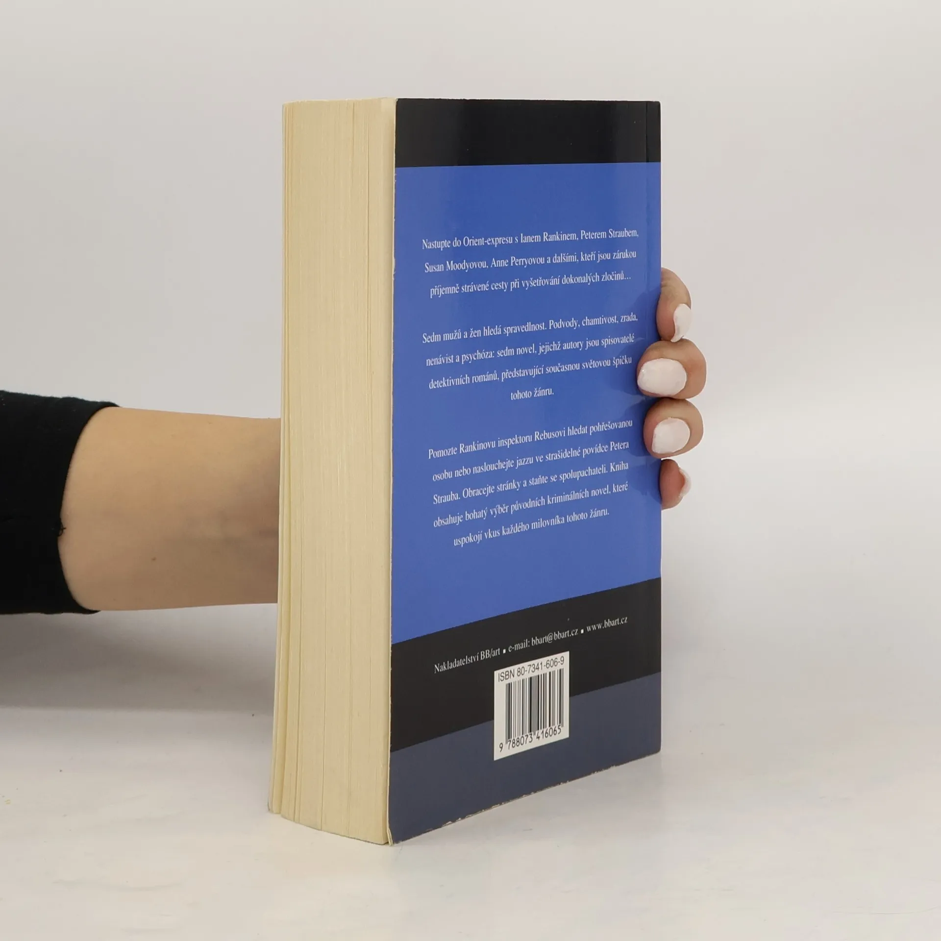 Kniha obsahuje sedm detektivních novel současných známých autorů tohoto žánru.Příspěvky do tohoto souboru vznikly na objednávku, autoři museli svůj nápad upravit do objemu novely, tedy ani dlouhý román, ani krátká povídka. Náměty našli nejen v současnosti, ale i v historii, například v době francouzské revoluce a pod. Předcházející podobný soubor detektivních novel vyšel v nakladatelství BB art pod názvem Láska a jiné zločiny.Bez souvislosti (No Connection) Susan MoodyNěkdo to radši chladné (A Dish Taken Cold) Anne PerrySmrt neznamená konec (Death Is Not the End) Ian RankinHistorka o tygrovi (A Tale About a Tiger) S. J. RozanManekýn (The Poster Boy) Stephen SolomitaHučka z vepřovice (Pork Pie Hat) Peter StraubTragédie ve skotsku (The Case of the Scottish Tragedy) June Thompson