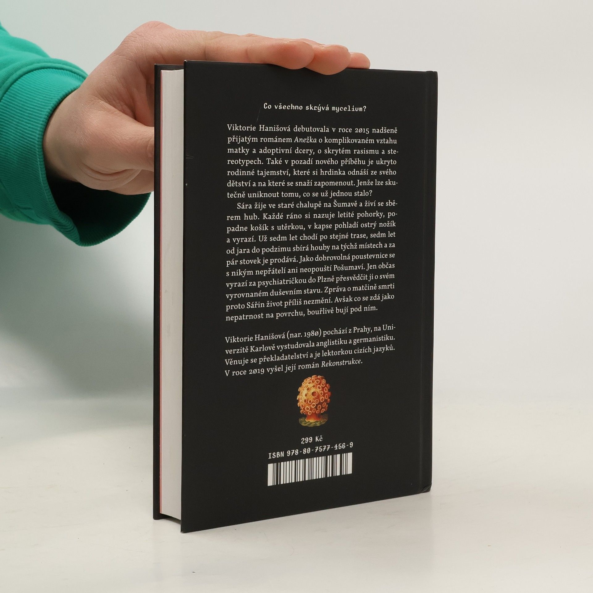 Co všechno se dá najít v lese? Mladá Sára žije ve staré chalupě na Šumavě a živí se sběrem hub. Každé ráno si obuje letité pohorky, popadne košík s utěrkou, v kapse pohladí ostrý nožík a vyrazí. Už sedm let chodí po stejné trase, sedm let od jara do podzimu sbírá houby na týchž místech a prodává je za pár stovek jedné hospodě. Jako dobrovolná poustevnice se s nikým nepřátelí ani neopouští Pošumaví. Jen občas vyrazí za psychiatričkou do Plzně přesvědčit ji o svém vyrovnaném duševním stavu. Zpráva o matčině smrti proto Sářin život příliš nezmění. Zúčastní se pohřbu, setká se s bratry, kterým se už dávno odcizila, a vrátí se zpátky do lesa. Jenže co se zdá jako nepatrnost na povrchu, bouřlivě bují pod ním. Dědické řízení do jejího života navrátí rodinu, která ji zavrhla. A domek se postupně rozpadá. Obchody nejdou. Začíná být jasné, že Sára bude muset svůj houbařský způsob života opustit. A jedinou cestou ven je přestat odvracet oči od toho předchozího. Viktorie Hanišová zpříma a zároveň citlivě měří, co vydrží dětská duše a kde jsou hranice rodiny. Román Houbařka je příběh předem neúspěšného pokusu utéct traumatu. Občas ale nejde neutíkat. Dotisk r. 2020