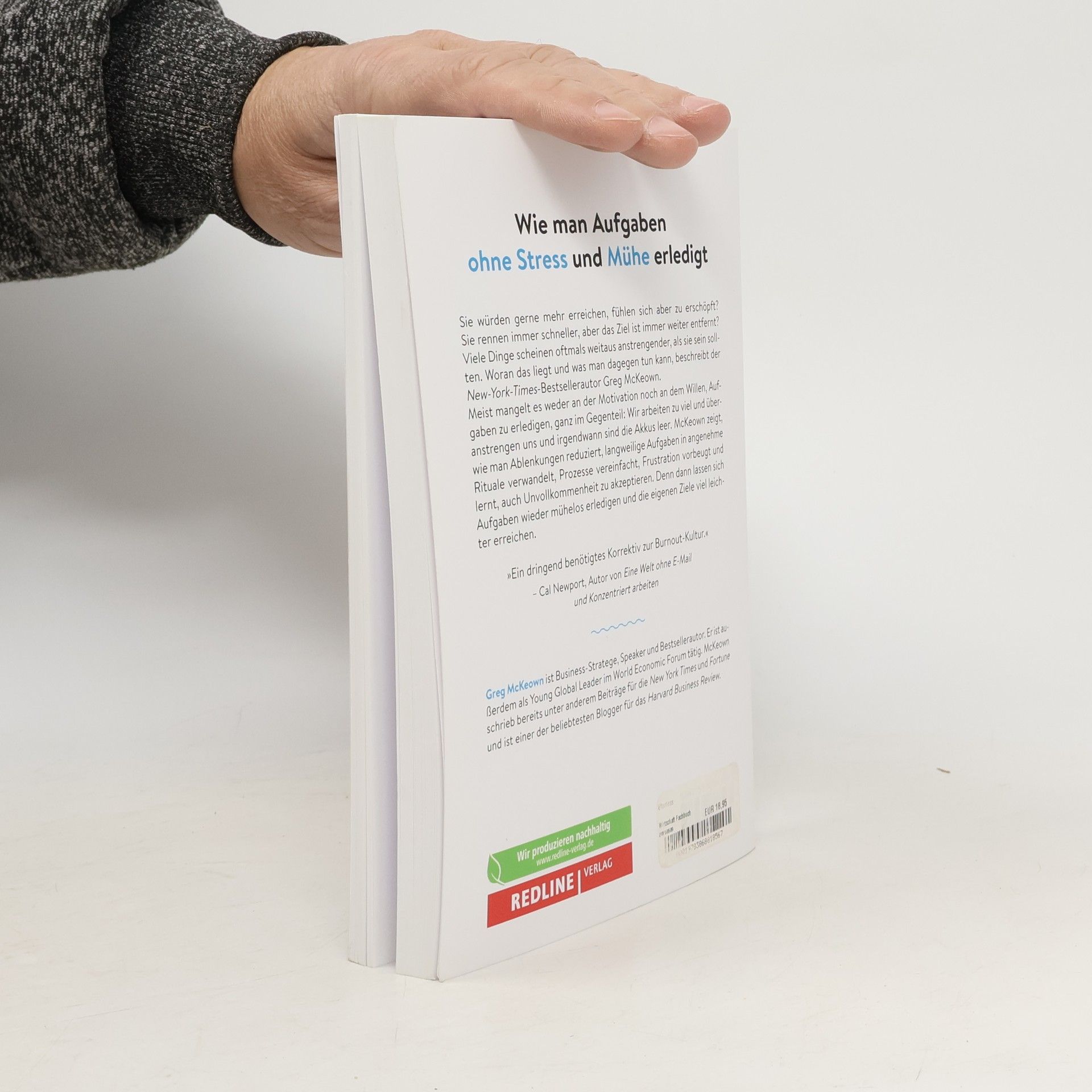 Wie man Aufgaben ohne Stress und Mühe erledigt Sie würden gerne mehr erreichen, fühlen sich aber zu erschöpft? Sie rennen immer schneller, aber das Ziel ist immer weiter entfernt? Viele Dinge scheinen oftmals weitaus anstrengender, als sie sein sollten. Woran das liegt und was man dagegen tun kann, beschreibt der New-York-Times-Bestsellerautor Greg McKeown. Meist mangelt es weder an der Motivation noch an dem Willen, Aufgaben zu erledigen, ganz im Gegenteil: Wir arbeiten zu viel und überanstrengen uns und irgendwann sind die Akkus leer. McKeown zeigt, wie man Ablenkungen reduziert, langweilige Aufgaben in angenehme Rituale verwandelt, Prozesse vereinfacht, Frustration vorbeugt und lernt, auch Unvollkommenheit zu akzeptieren. Denn dann lassen sich Aufgaben wieder mühelos erledigen und die eigenen Ziele viel leichter erreichen. »Ein dringend benötigtes Korrektiv zur Burnout-Kultur.« – Cal Newport, Autor von Eine Welt ohne E-Mail und Konzentriert arbeiten