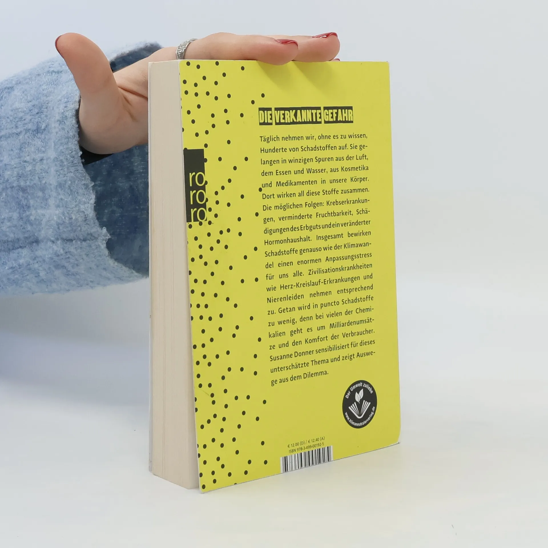 Täglich nehmen wir, ohne es zu wissen, hunderte von Schadstoffen auf. Sie gelangen in winzigen Spuren aus der Luft, dem Essen und Wasser, aus Kosmetika und Medikamenten in unseren Körper. Dort wirken all diese Stoffe zusammen. Die möglichen Folgen: Krebserkrankungen, verminderte Fruchtbarkeit, Schädigungen des Erbguts und ein veränderter Hormonhaushalt. Insgesamt aber bewirken Schadstoffe genauso wie der Klimawandel einen enormen Anpassungsstress für alle Lebewesen, also auch für den Menschen. Zivilisationskrankheiten wie Herz-Kreislauferkrankungen und Nierenleiden nehmen entsprechend zu. Getan wird in puncto Schadstoffe zu wenig, denn bei vielen der Chemikalien geht es um Milliardenumsätze und den Komfort der Verbraucher. Susanne Donner sensibilisiert für dieses unterschätzte Thema und zeigt Auswege aus dem Dilemma