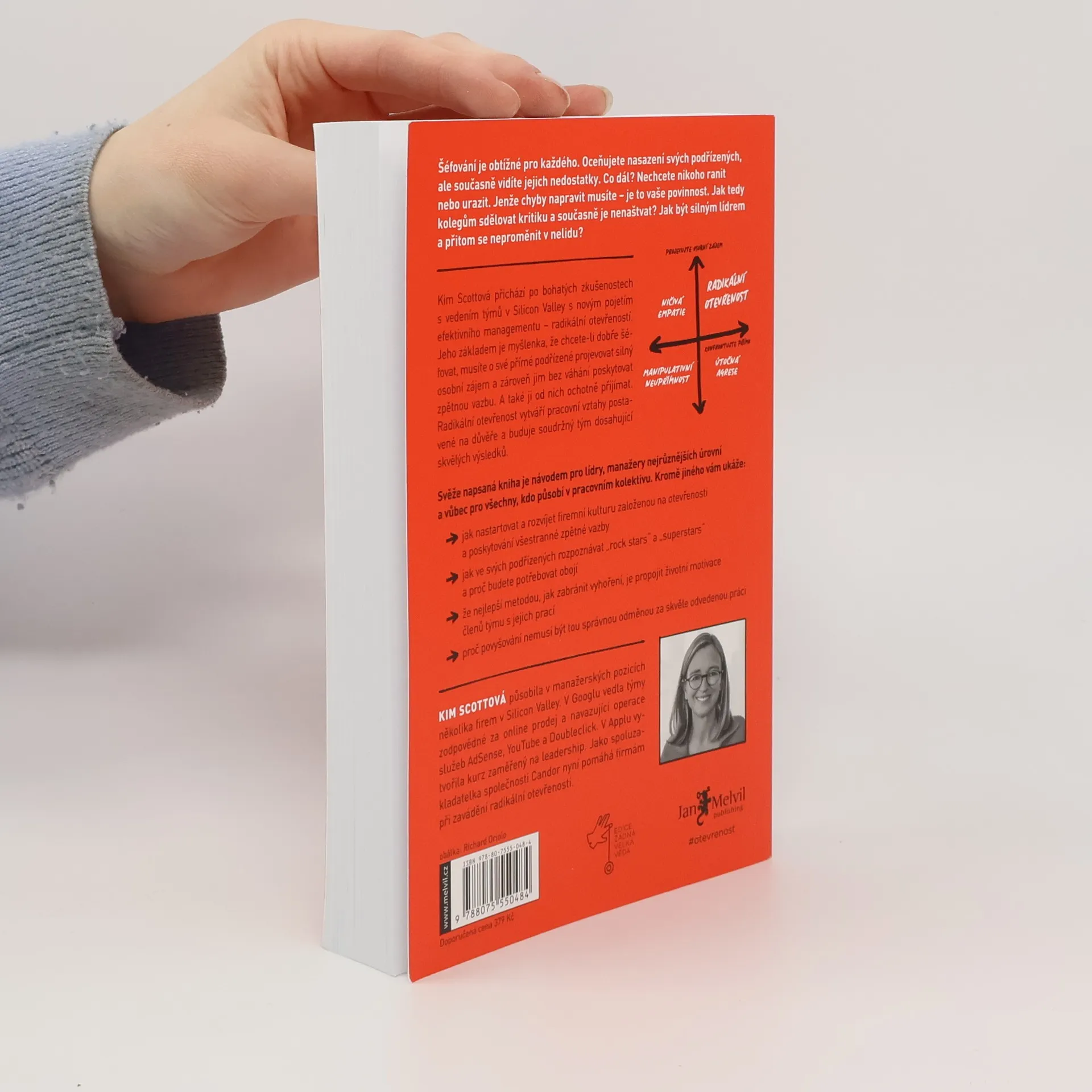 Šéfování je obtížné pro každého. Oceňujete nasazení svých podřízených, ale současně vidíte jejich nedostatky. Co dál? Nechcete nikoho ranit nebo urazit. Jenže chyby napravit musíte – je to vaše povinnost. Jak tedy kolegům sdělovat kritiku a současně je nenaštvat? Jak být silným lídrem a přitom se neproměnit v nelidu? Kim Scottová přichází po bohatých zkušenostech s vedením týmů v Silicon Valley s novým pojetím efektivního managementu – radikální otevřeností. Jeho základem je myšlenka, že chcete-li dobře šéfovat, musíte o své přímé podřízené projevovat silný osobní zájem a zároveň jim bez váhání poskytovat zpětnou vazbu. A také ji od nich ochotně přijímat. Radikální otevřenost vytváří pracovní vztahy postavené na důvěře a buduje soudržný tým dosahující skvělých výsledků. Svěže napsaná kniha je návodem pro lídry, manažery nejrůznějších úrovní a vůbec pro všechny, kdo působí v pracovním kolektivu. Kromě jiného vám ukáže: - jak nastartovat a rozvíjet firemní kulturu založenou na otevřenosti a poskytování všestranné zpětné vazby - jak ve svých podřízených rozpoznávat „rock star“ a „superstar“ a proč budete potřebovat obojí - že nejlepší metodou, jak zabránit vyhoření, je propojit životní motivace členů týmu s jejich prací - proč povyšování nemusí být tou správnou odměnou za skvěle odvedenou práci