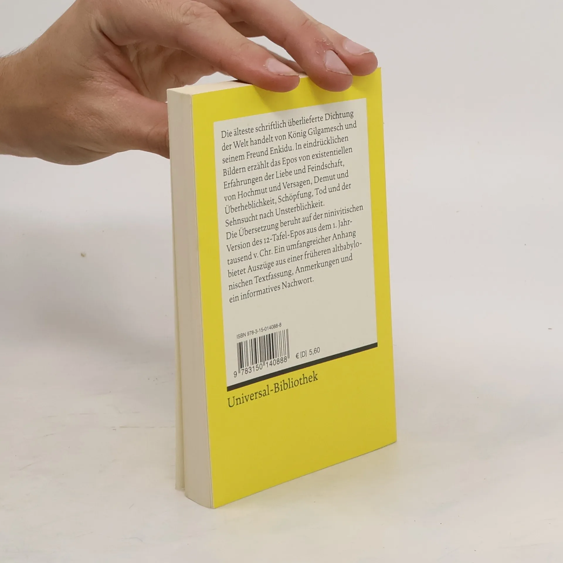 Das Gilgamesch-Epos ist eines der ältesten Dokumente der menschlichen Fähigkeit zu erzählen. Es schildert die Taten und Erlebnisse des jungen Königs Gilgamesch und seines Freundes Enkidu als weite Reisen durch die Welt und die Erfahrung des Lebens. Die Neuübersetzung von Wolfgang Röllig basiert auf einem durch spektakuläre archäologische Funde wesentlich ergänzten Text. Einleitung und Kommentar erleichtern das Verständnis, ein Anhang bietet ergänzend die noch viel älteren Bruchstücke der altbabylonischen Versionen.