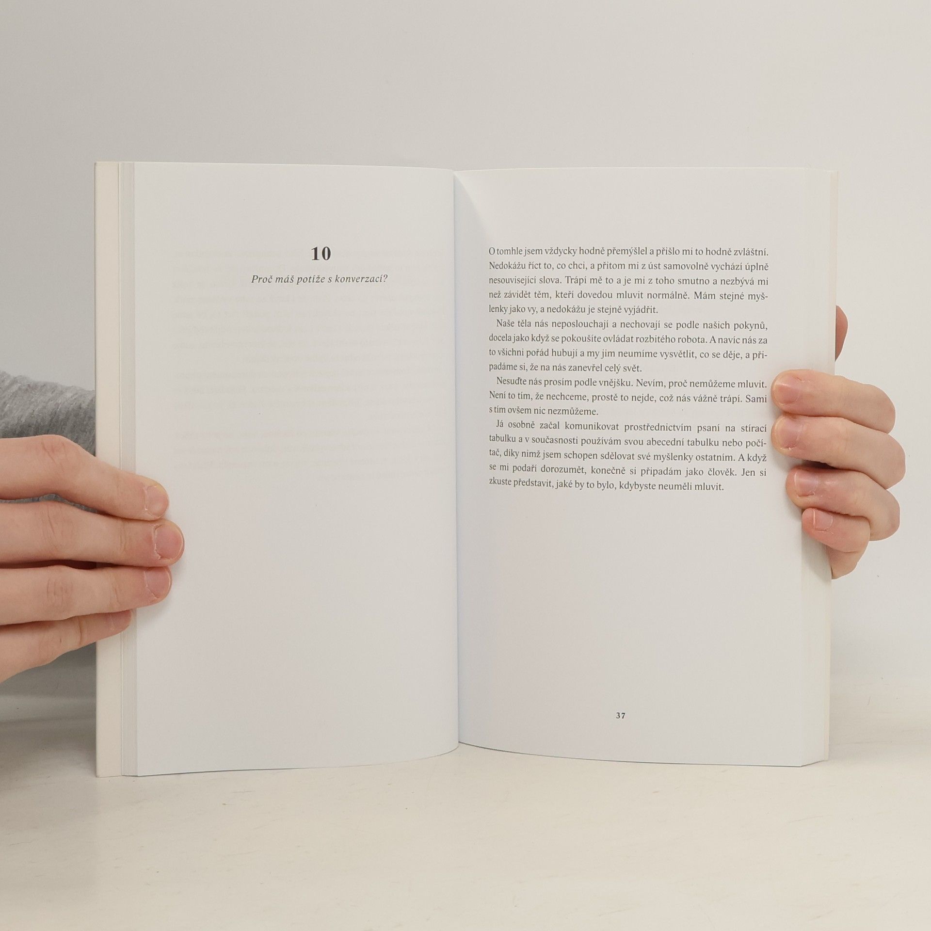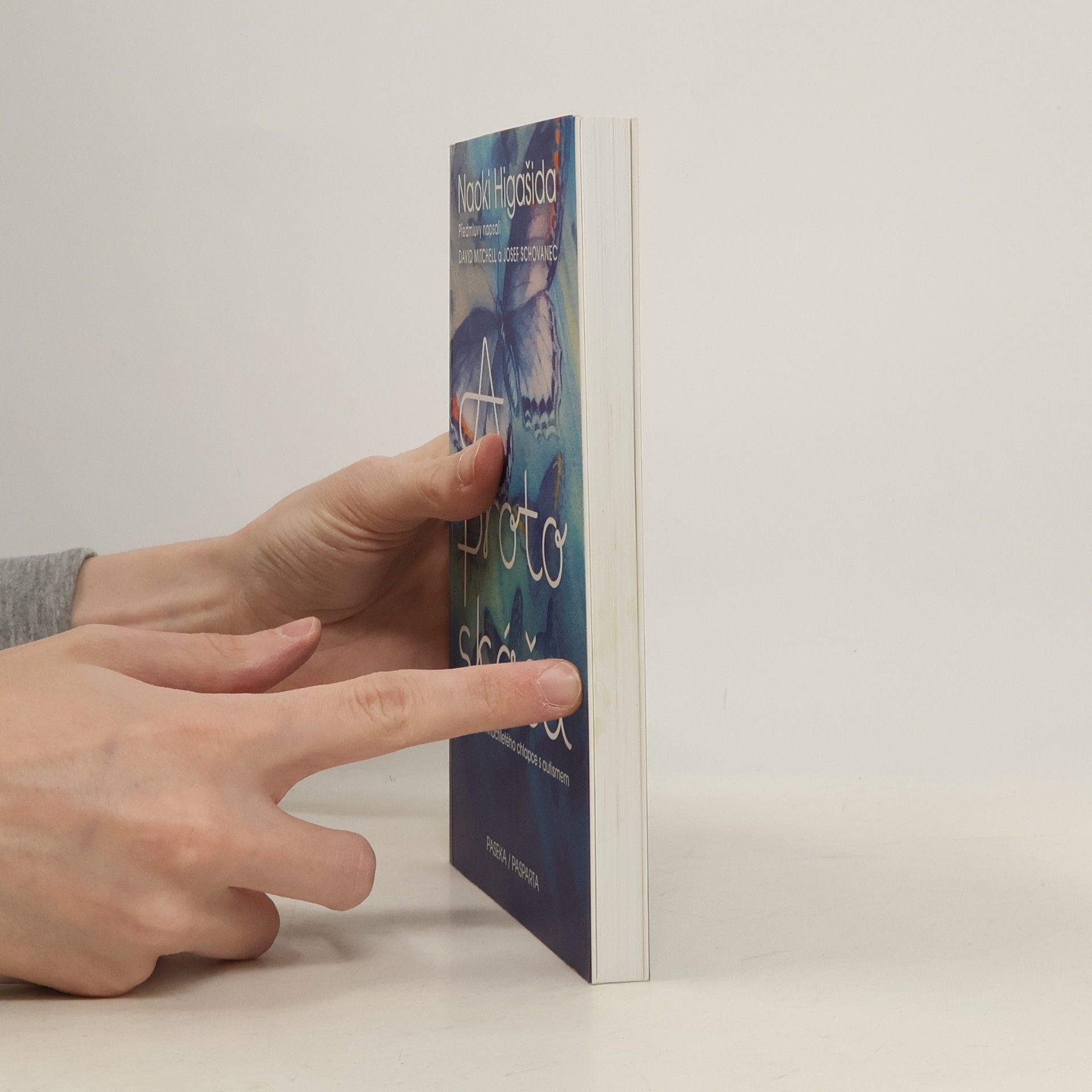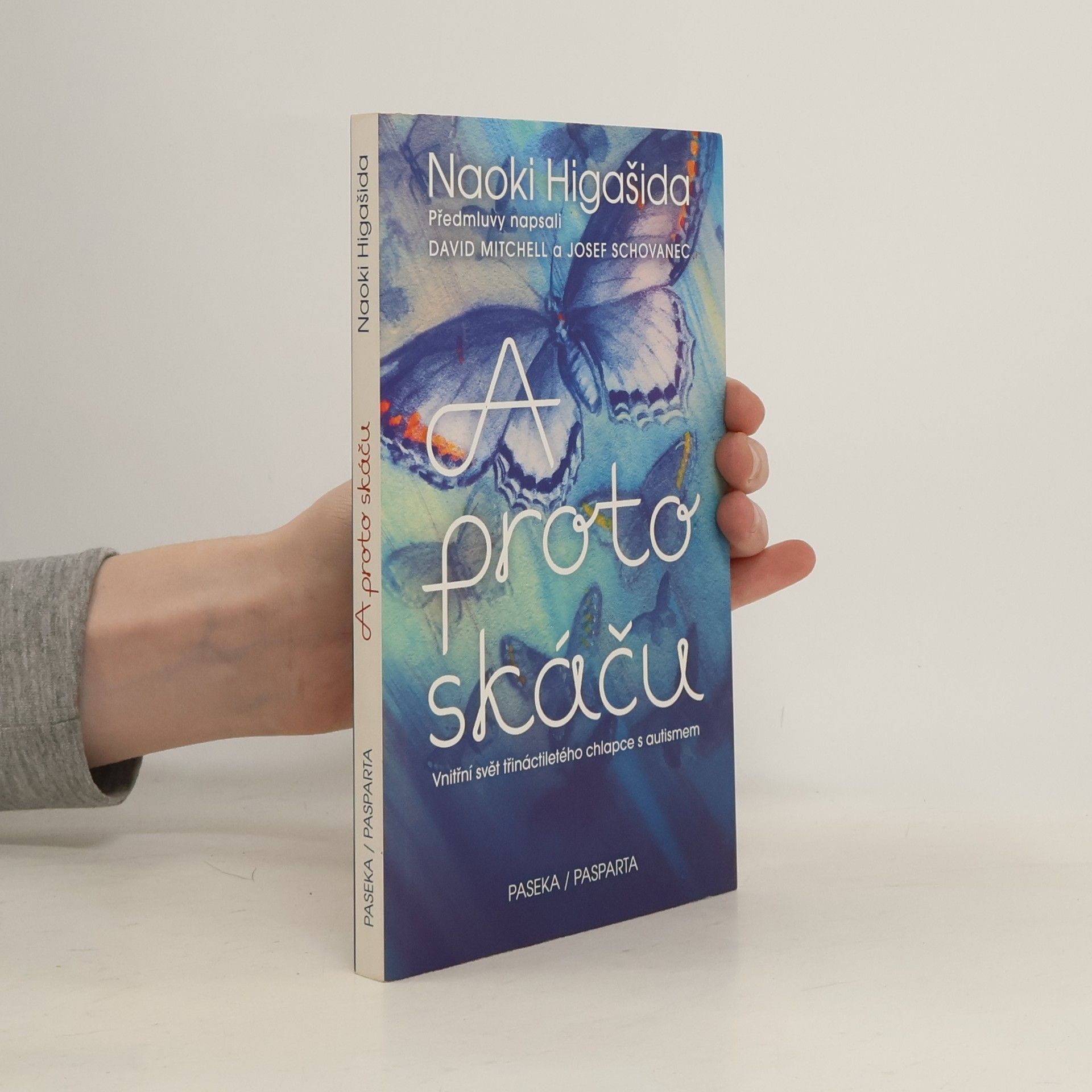 Vnitřní svět třináctiletého chlapce s autismem. Mladý spisovatel, básník a bloger z Japonska trpí tak silnou formou autismu, že nedokáže mluvit. Jeho vidění světa je však neuvěřitelně bohaté, citlivé a inteligentní. Dokázal to v bestselleru A proto skáču, který ve svých třinácti „sepsal“ za zcela mimořádných okolností. Metodou ukazování znaků na papírové matrici odpověděl na osmapadesát otázek, jež mu ostatní často kladou: Proč nemůžeš být chvíli v klidu? Proč se učíš nazpaměť jízdní řády? Co je nejhorší, když má člověk autismus? Unikátní knihu v Japonsku objevil britský spisovatel David Mitchell, sám otec autistického syna, společně s manželkou ji přeložil do angličtiny a Higašidu a jeho niterné svědectví proslavil po celém západním světě. „Představte si, že se nacházíte v místnosti s dvaceti radiopřijímači. Všechny hrají a naplno se z nich linou hlasy a hudba. Nejde je vypnout ani ztlumit a místnost nemá okna ani dveře, takže jedinou úlevu vám přinese až naprosté vyčerpání,“ přibližuje v sugestivní předmluvě Mitchell pocity lidí s autismem. Přeloženo z japonského originálu s přihlédnutím k anglickému překladu The Reason I Jump (2014), který pořídili David Mitchell a K.A. Yoshida.