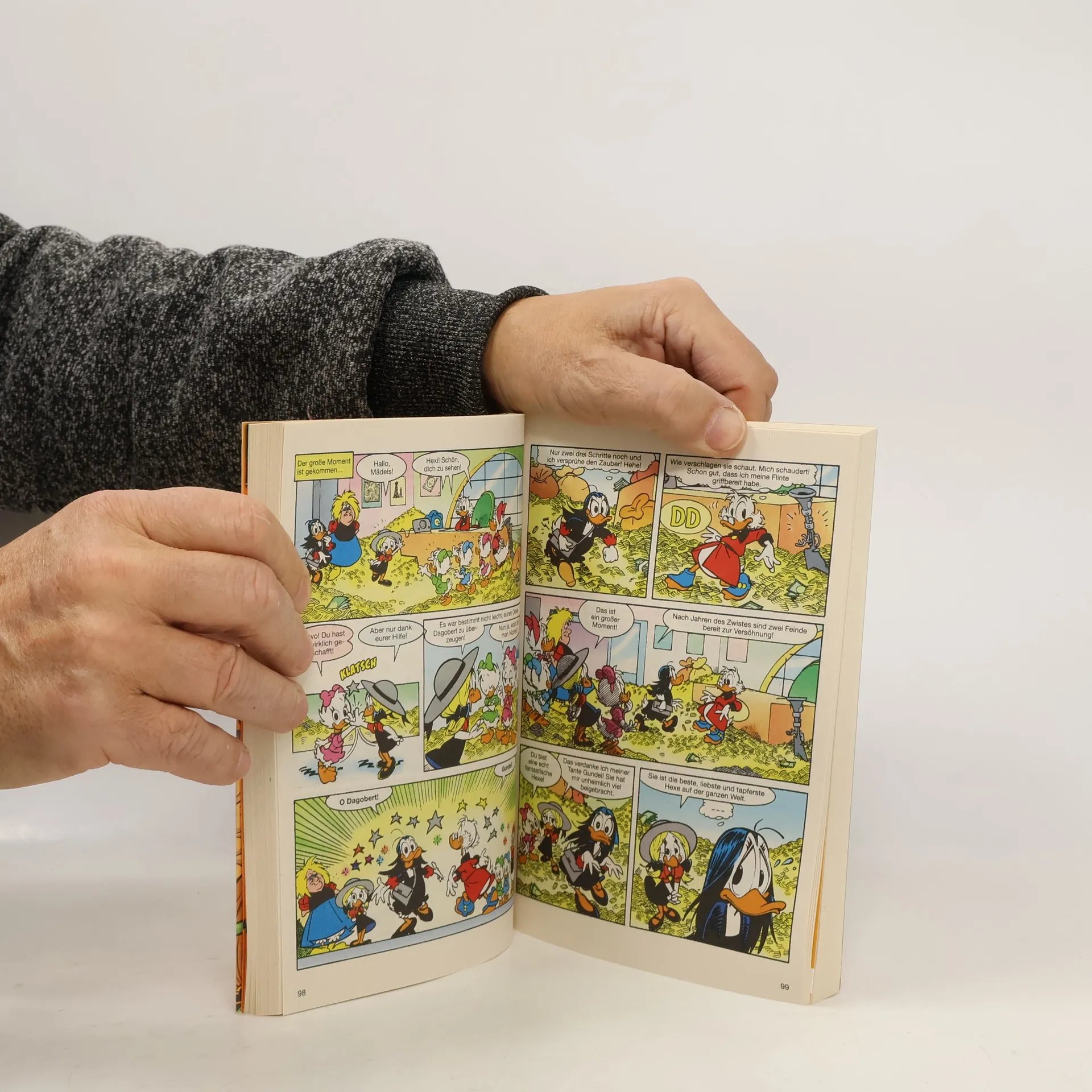 „Süßes oder Saures“ heißt der Schlachtruf zu Halloween. Und dieses Jahr ist ganz Entenhausen scharf auf Zuckriges. Und so ziehen nicht nur Kinder und Jugendliche zur Halloween’schen Geisterstunde von Haustür zu Haustür, sondern auch ein paar äußerst rätselhafte Gestalten. Und so ein Rätsel will gelöst sein. Im besten Fall von Detektiv Donald Duck. Die Spur führt ihn direkt in den Geldspeicher. Statt Talern hortet Dagobert Duck jetzt nämlich Süßigkeiten. Ist der eigentlich als Kostverächter bekannte Fantastilliardär plötzlich unter die Genießer gegangen? Donalds Spürnäschen als Detektiv verrät ihm, dass hier irgendetwas nicht mit rechten Dingen zugeht.