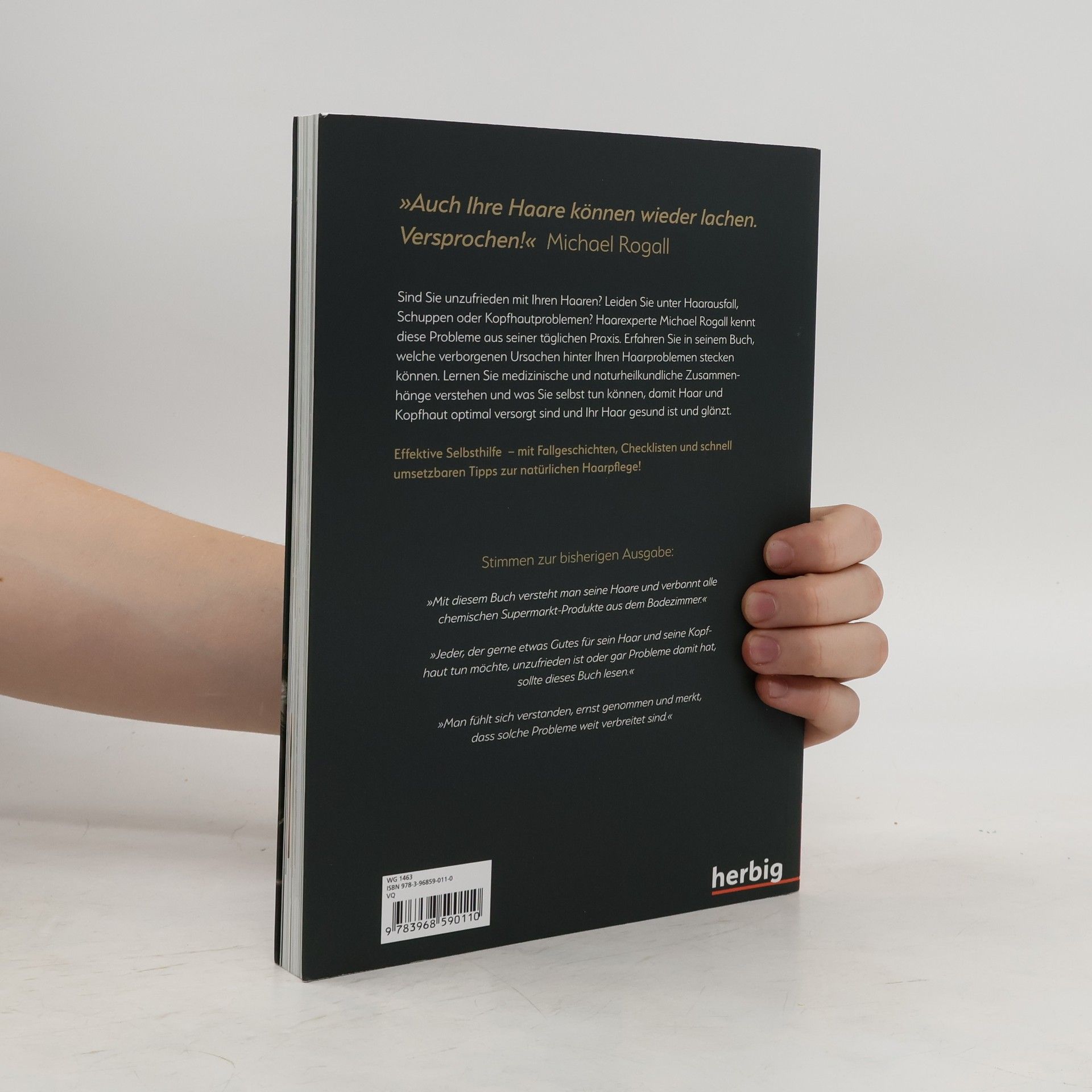 Der Experte aus dem SAT.1-Frühstücksfernsehen! Glänzendes, gesundes Haar ist Ausdruck unseres persönlichen Wohlbefindens und trägt zu einem selbstbewussten Auftreten bei. Gerät unser Körper jedoch durch z.B. eine angegriffene Immunabwehr, hormonelle Ungleichgewichte oder Mineralstoffmangel aus der Balance, zeigt sich das auch an Haar und Kopfhaut. Michael Rogall beschäftigt sich seit über 20 Jahren intensiv mit der ganzheitlichen Haar- und Kopfhautbehandlung und hat als Haarpraktiker ein neues Berufsbild geprägt. Sein reich bebilderter Ratgeber bietet mehr als 100 Experten-Tipps zur effektiven Selbsthilfe bei geschädigtem Haar, Schuppen und Haarausfall. Er zeigt, wie die Kopfhaut richtig gepflegt wird und welche Haarfarben geeignet sind. Der umfassende Ratgeber für eine gesunde Kopfhaut und fülliges Haar – mit vielen Tipps zur natürlichen Haarpflege.