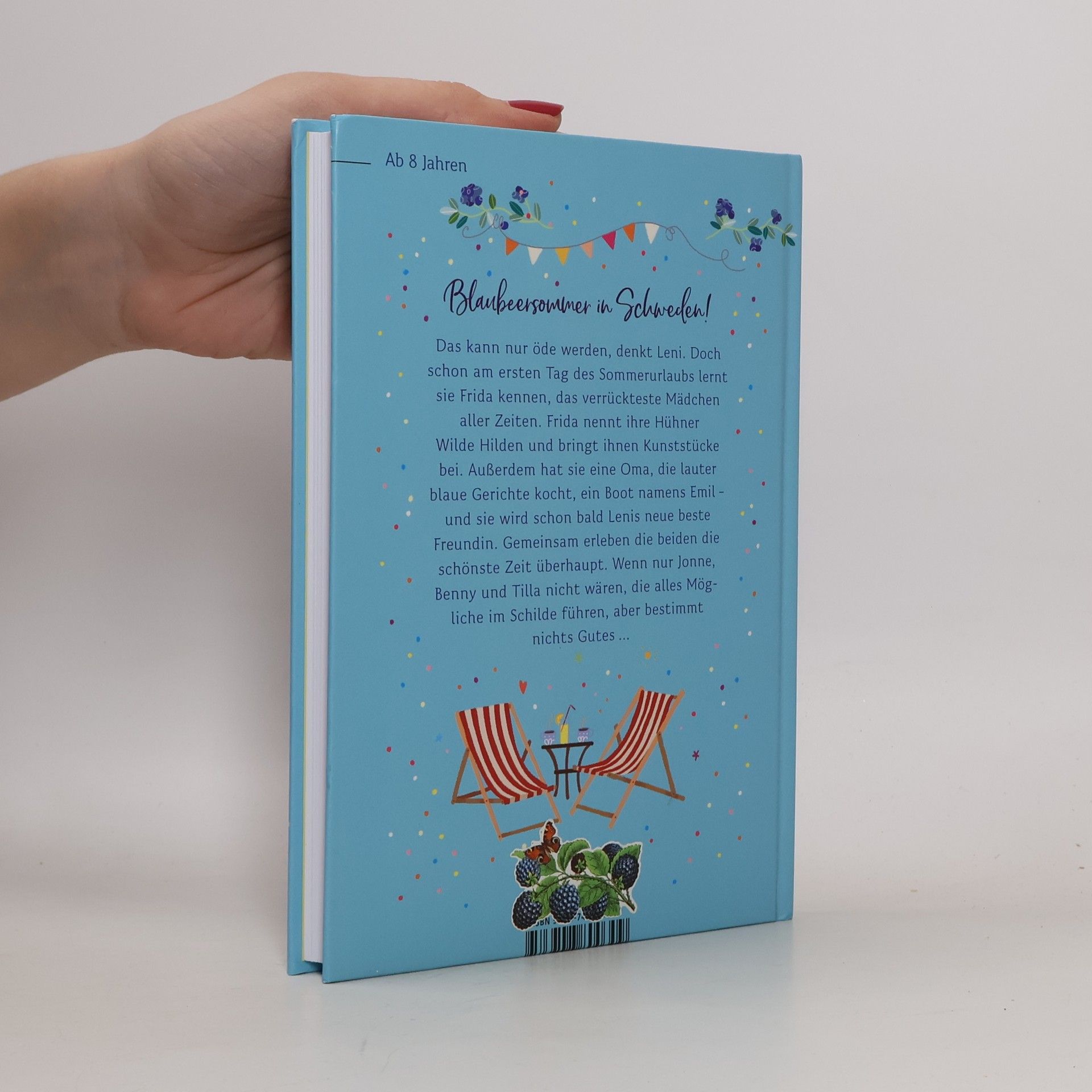 Blaubeersommer in Schweden! Das kann nur öde werden, denkt Leni. Doch schon am ersten Tag des Sommerurlaubs lernt sie Frida kennen, das verrückteste Mädchen aller Zeiten. Frida nennt ihre Hühner Wilde Hilden und bringt ihnen Kunststücke bei. Außerdem hat sie eine Oma, die lauter blaue Gerichte kocht, ein Boot namens Emil – und sie wird schon bald Lenis neue beste Freundin. Gemeinsam erleben die beiden die schönste Zeit überhaupt. Wenn nur Jonne, Benny und Tilla nicht wären, die alles Mögliche im Schilde führen, aber bestimmt nichts Gutes …