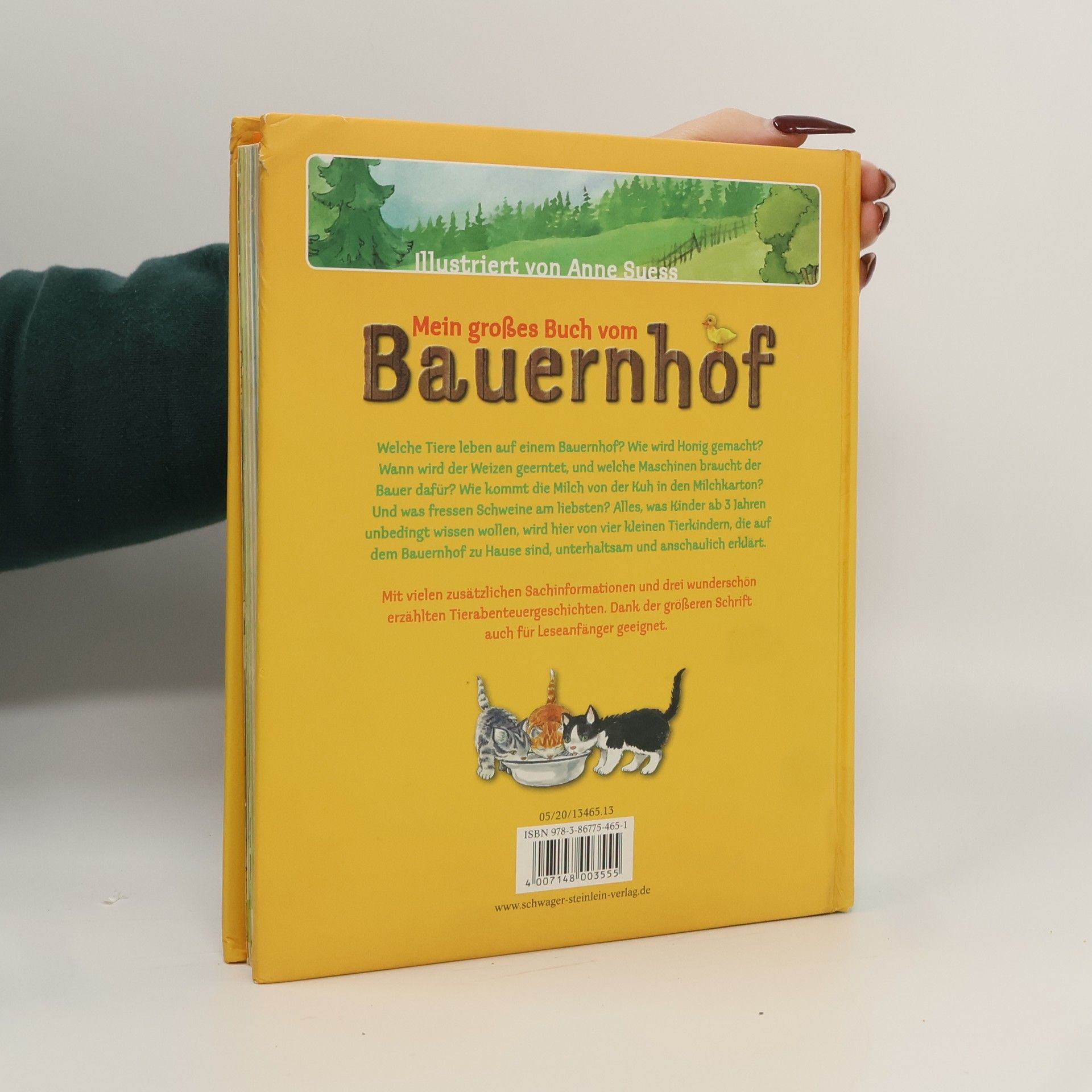 Welche Tiere leben auf einem Bauernhof? Wie wird Honig gemacht? Wann wird der Weizen geerntet, und welche Maschinen braucht der Bauer dafür? Wie kommt die Milch von der Kuh in den Milchkarton? Und was fressen Schweine am liebsten? In diesem Buch erhalten Kinder ab 3 Jahren auf unterhaltsame Weise ein wirklichkeitsnahes Bild vom Leben auf dem Bauernhof. Die Erklärungen sind in kindgerechten Worten verfasst und mit detaillierten Illustrationen von Anne Suess bebildert.