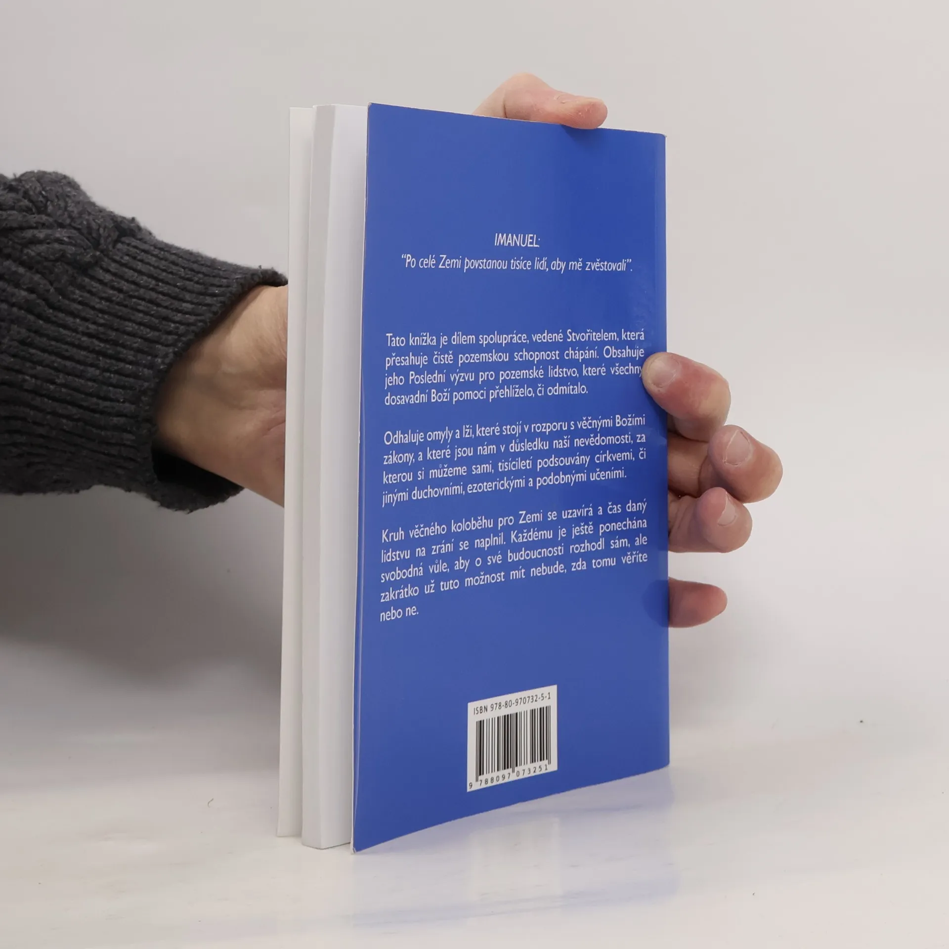 Dodnes jsme všichni klamáni a zavádění o pravém smyslu našeho bytí. Většina lidí žije v duchovní nevědomosti, přestože touha po duchovním poznání, po Pravdě, je jako zákon zakotvena v každém z nás a nutí nás hledat vyšší smysl života. Odkloněním se od nejvyššího zdroje Pravdy-Stvořitele a jeho věčných zákonů, si lidstvo dobrovolně zapříčinilo svůj pád a utrpení. Spolu s sebou strhlo i planetu Zemi. Avšak Stvořitel svou magnetickou silou Zemi, jako poslední světlou planetu ve stvoření, vytáhne znovu nahoru do oblasti Světla, kam patří, čímž se vrátí na svou původní oběžnou dráhu. Tomuto ději však předchází již několik let probíhající velká očista Země, během níž ji musí opustit všichni ti, kteří na ni nepatří. Tato knížka je dílem spolupráce, vedené Stvořitelem, která přesahuje čistě pozemskou schopnost chápání. Obsahuje jeho Poslední výzvu pro pozemské lidstvo, které všechny dosavadní Boží pomoci přehlíželo, či odmítalo. Odhaluje omyly a lži, které stojí v rozporu s věčnými Božími zákony, a které jsou nám v důsledku naší nevědomosti, tisíciletí podsouvány církvemi, či jinými duchovními, ezoterickými a podobnými učeními.