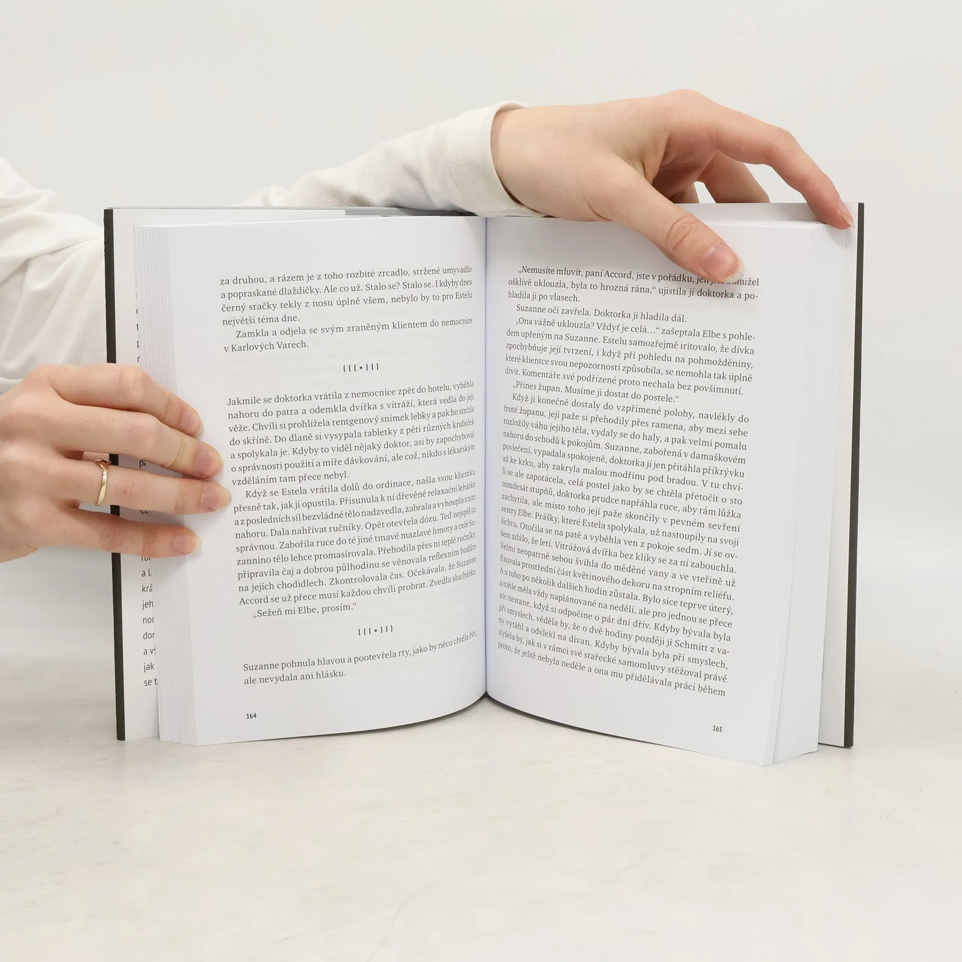 Anglická dívka Angela, která má těsně před svatbou, se v srpnu 1968 vydá do Československa navštívit rodinu svého otce, jehož nikdy nepoznala. Poslední, co od ní její snoubenec Henry uslyší ze sluchátka telefonu, je slovo „chleba“. Pak se po Angele prostě slehne zem. Tak začíná pozoruhodná románová prvotina Lenky Elbe. Angela však oproti očekávání nezahyne pod pásy ruských tanků, její život pohltí historie ještě hlubší a síly ještě temnější. O mnoho let později se z terapeutických důvodů po Angeliných stopách vydává Henry v doprovodu nové, teď už dlouholeté partnerky. Hlavním hrdinou románu je ovšem město Jáchymov, město lázní a lágrů, stříbra a uranu, město s historií slavně krásnou i neslavně strašnou. V knize se mísí všechny jeho paradoxy, osudy i chování lidí ovlivňují jevy normální i paranormální, ve střízlivém lázeňském domě s přísným řádem se dějí nepochopitelné věci, a všechny nitky vedou do jáchymovského podzemí, jak toho skutečného, tak pomyslného. A nade vším se tajuplně line zelenkavá záře uranového skla.