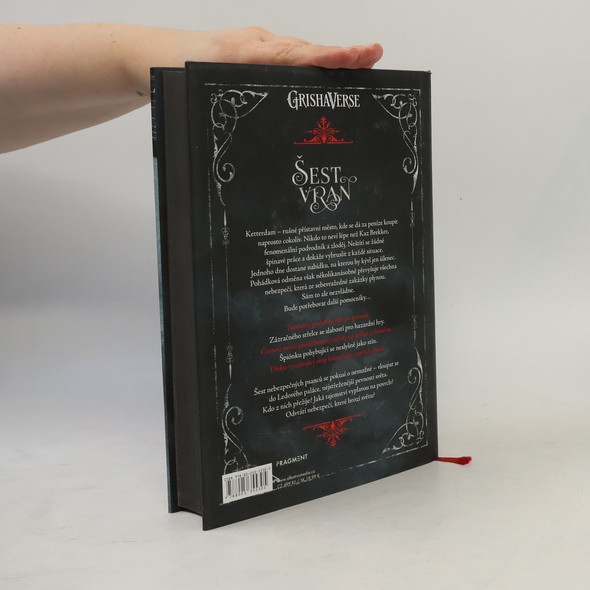 Úspěchy ověnčená fantasy od současné hvězdy young adult literatury Leigh Bardugo! Za peníze se dá koupit všechno! Nebo aspoň to platí v Ketterdamu, ve kterém se nikdo nevyzná lépe než Kaz Brekker, fenomenální podvodník a zloděj. A když se objeví neodolatelná zakázka? Je čas sehnat si pomocníky. Zloděj, trestanec, hazardní hráč, černá ovce rodiny, špionka a kráska-zabiják – šest nebezpečných psanců, kteří se pokusí dostat se do nejstřeženější pevnosti světa. Podaří se jim vyváznout se zdravou kůží?