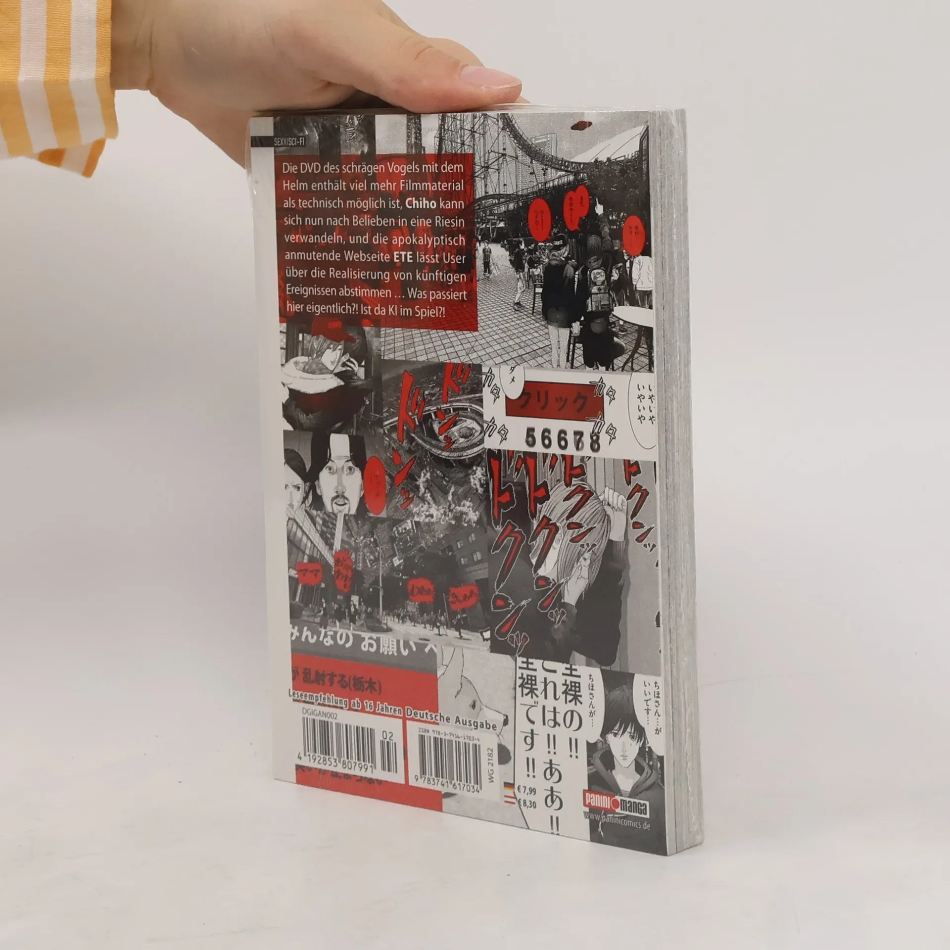 Die DVD des schrägen Vogels mit Helm enthält viel mehr Filmmaterial als technisch möglich ist, Chiho kann sich nun nach Belieben in eine Riesin verwandeln, und die apokalyptisch anmutende Webseite ETE lässt User über die Realisierung von künftigen Ereignissen abstimmen … Was passiert hier eigentlich?! Ist da KI im Spiel?