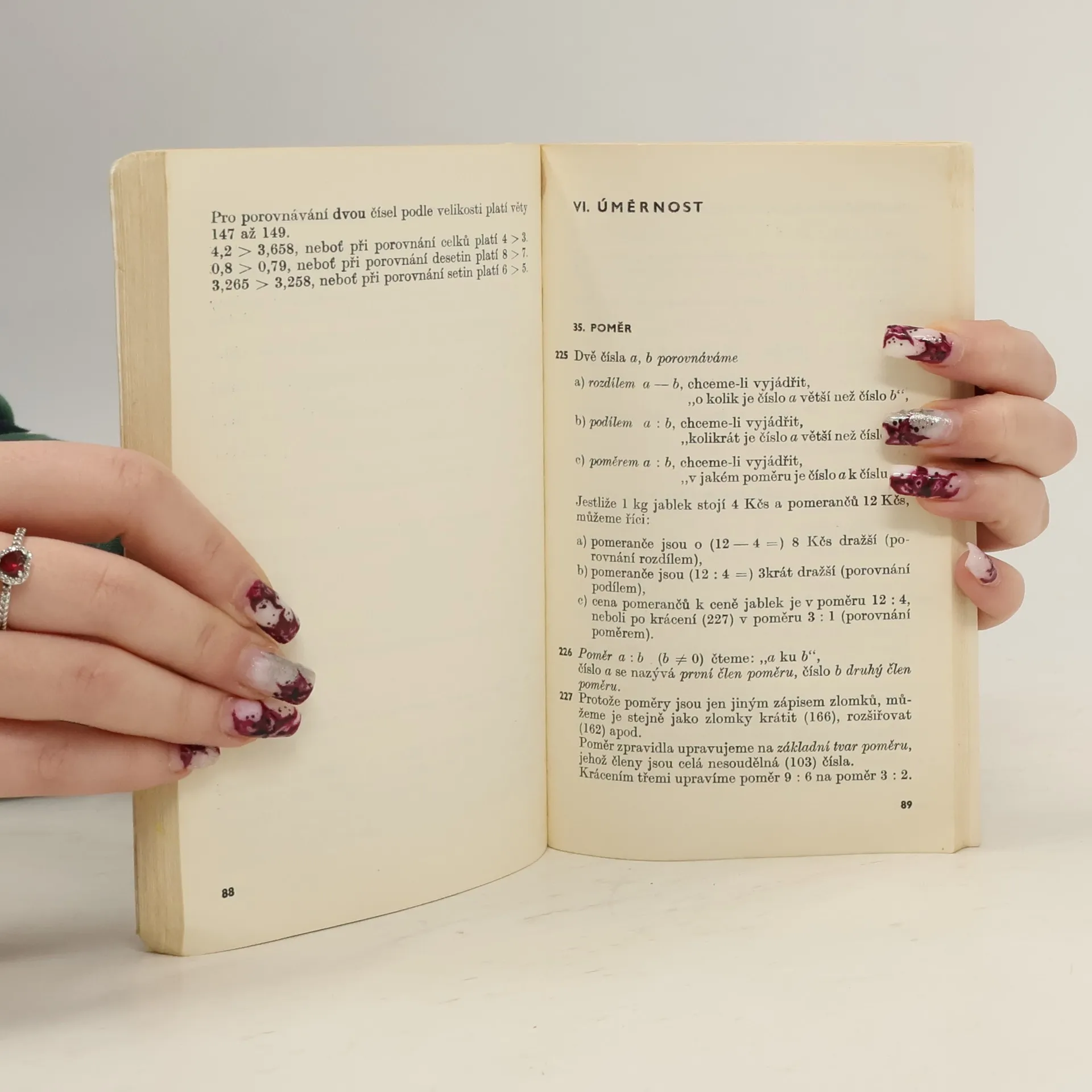 Praktická příručka slouží k opakování látky ze základní devítileté školy. Matematické pojmy, poučky a postupy jsou rozčleněny do 621 vět, označených pořadovými čísly. K lepšímu pochopení poznatků jsou u jednotlivých vět uvedeny jednoduché příklady, vysvětlivky a obrázky. Text ařešené příklady jsou doplněny odkazy na předcházející věty, v nichž jsou podrobněji objasněny použité vzorce, postupy a terminologie