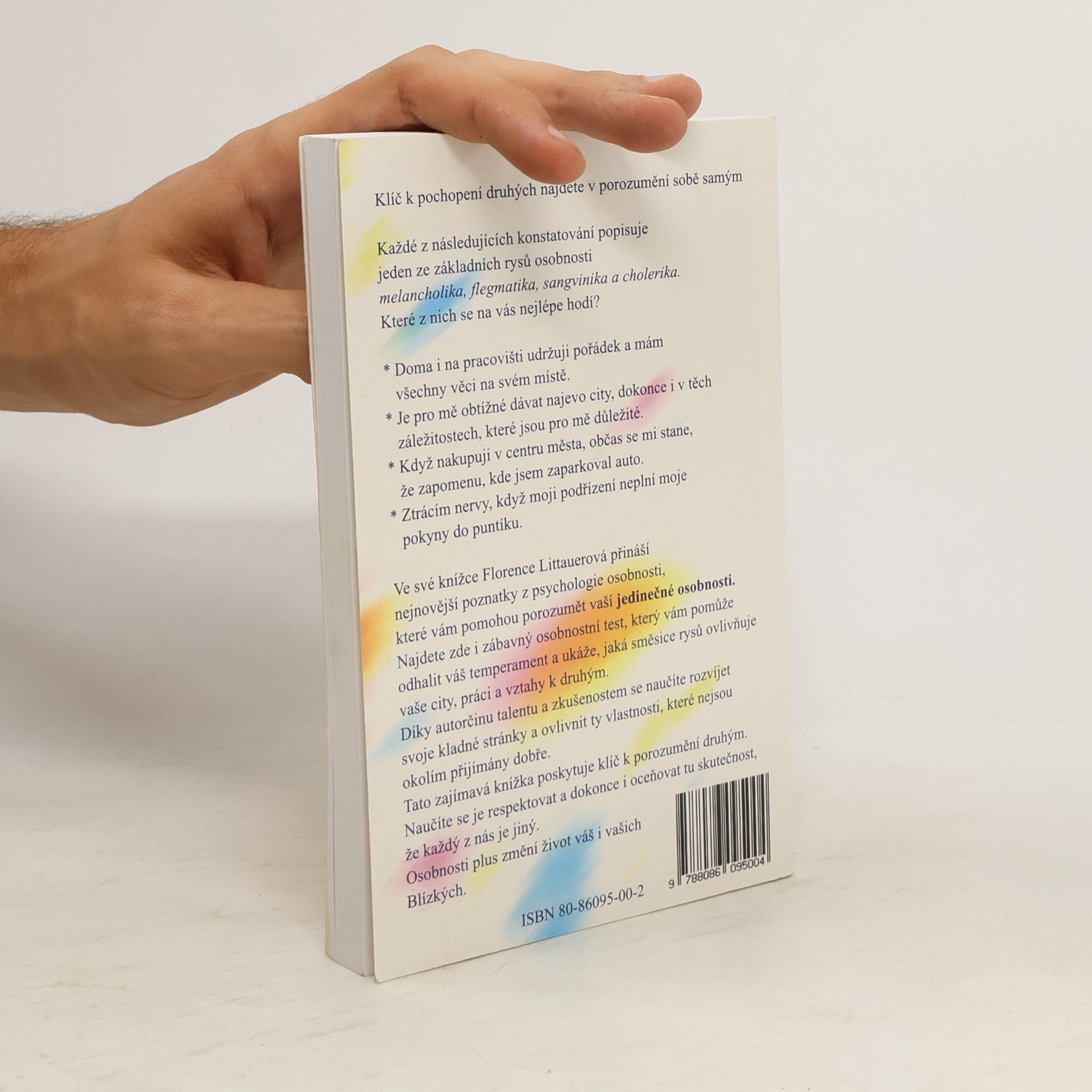 Jak porozumět druhým porozuměním sobě samým. Významná psycholožka nabízí v knize klíč k porozumění druhých a přináší poznatky k pochopení své vlastní jedinečné osobnosti na základě rozdílných povah melancholika, cholerika, sangvinika, flegmatika a jejich zastoupení v každém z nás. Naučí čtenáře rozvinout své klady a ovlivnit zápory vlastní osobnosti. Součástí knihy je užitečný osobnostní test.... celý text