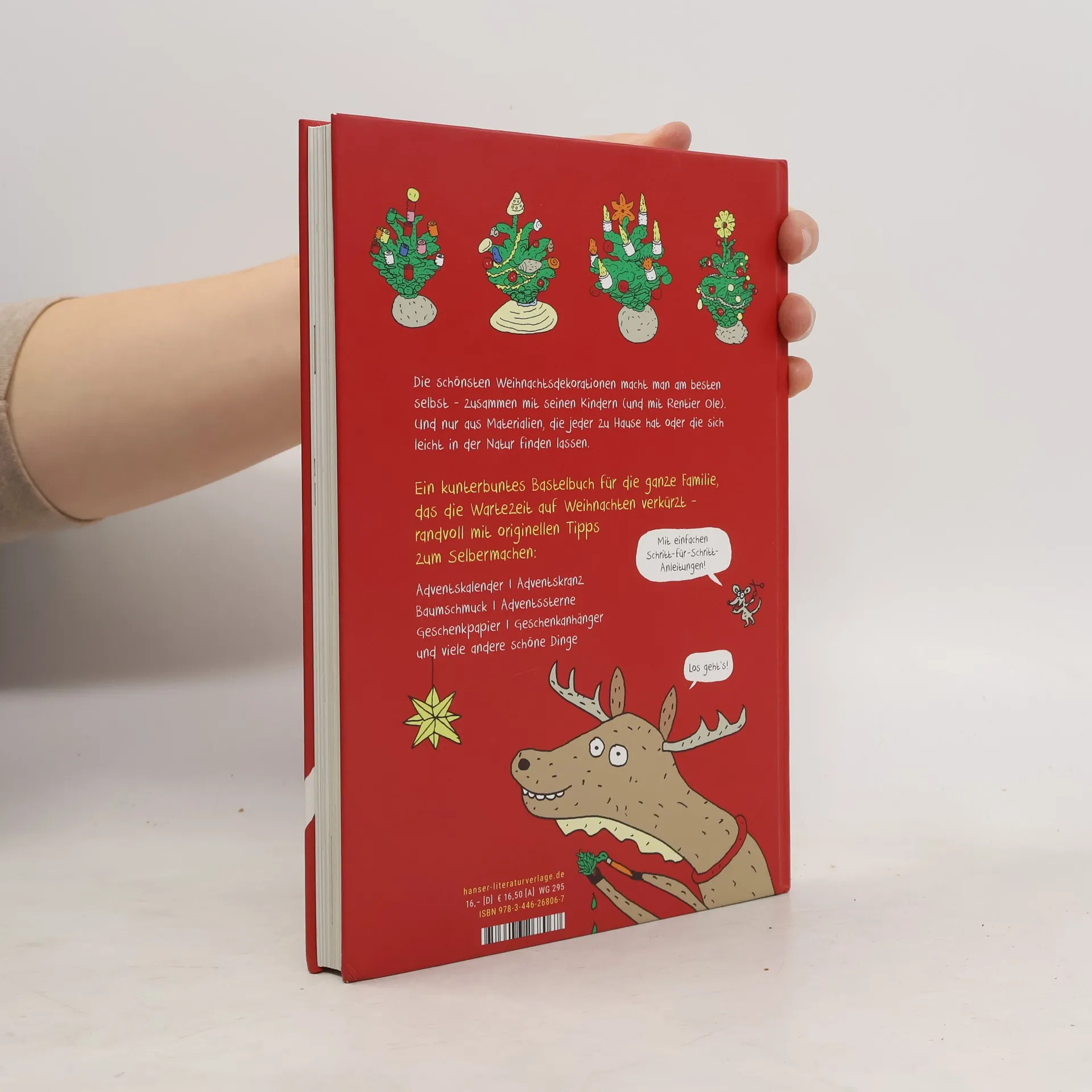 Baumschmuck, Geschenke oder Karten – Rentier Ole kann einfach alles! Ein originelles Bastelbuch für die ganze Familie in der Advents- und Weihnachtszeit Die Zeit bis Weihnachten ist soo lang! Was soll Rentier Ole bis dahin bloß machen? Wie wäre es mit Weihnachtsbasteleien? Ole macht sich gleich ans Werk: Adventskalender, eine festliche Dekoration für sein Zuhause und Weihnachtskarten, um sie an seine Freunde zu schicken. Auch den Baumschmuck macht er natürlich selbst, ebenso wie Geschenkpapier und Anhänger. Und das alles mit Materialien, die jeder zu Hause hat oder die sich leicht in der Natur finden lassen. Durch die detailreichen Zeichnungen verstehen schon kleine Kinder die Anleitungen, und Rentier Ole führt mit viel Humor durch die Buchseiten voller kreativer Ideen. Ein herrlich kunterbuntes Bastelbuch für die ganze Familie, das die Wartezeit auf Weihnachten verkürzt.