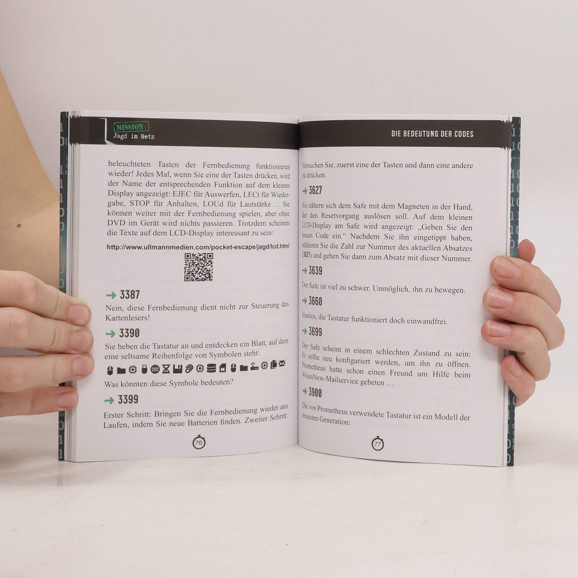 Dieser neue Titel aus der Reihe der Pocket Escape Books entführt den Leser in die Welten des Cyberspace: Ob als Sonderermittler auf der Spur eines gefährlichen Cyberterroristen oder auf der Suche nach einem in der virtuellen Realität des Mega Game verschollenen Freund, hier gibt es viele Nüsse aus dem Bereich der Neuen Medien, PC-Spiele und Informatik zu knacken … und wieder arbeitet die Zeit gegen den Spieler. Mit erweitertem und verändertem Online-Spiel-Anteil.