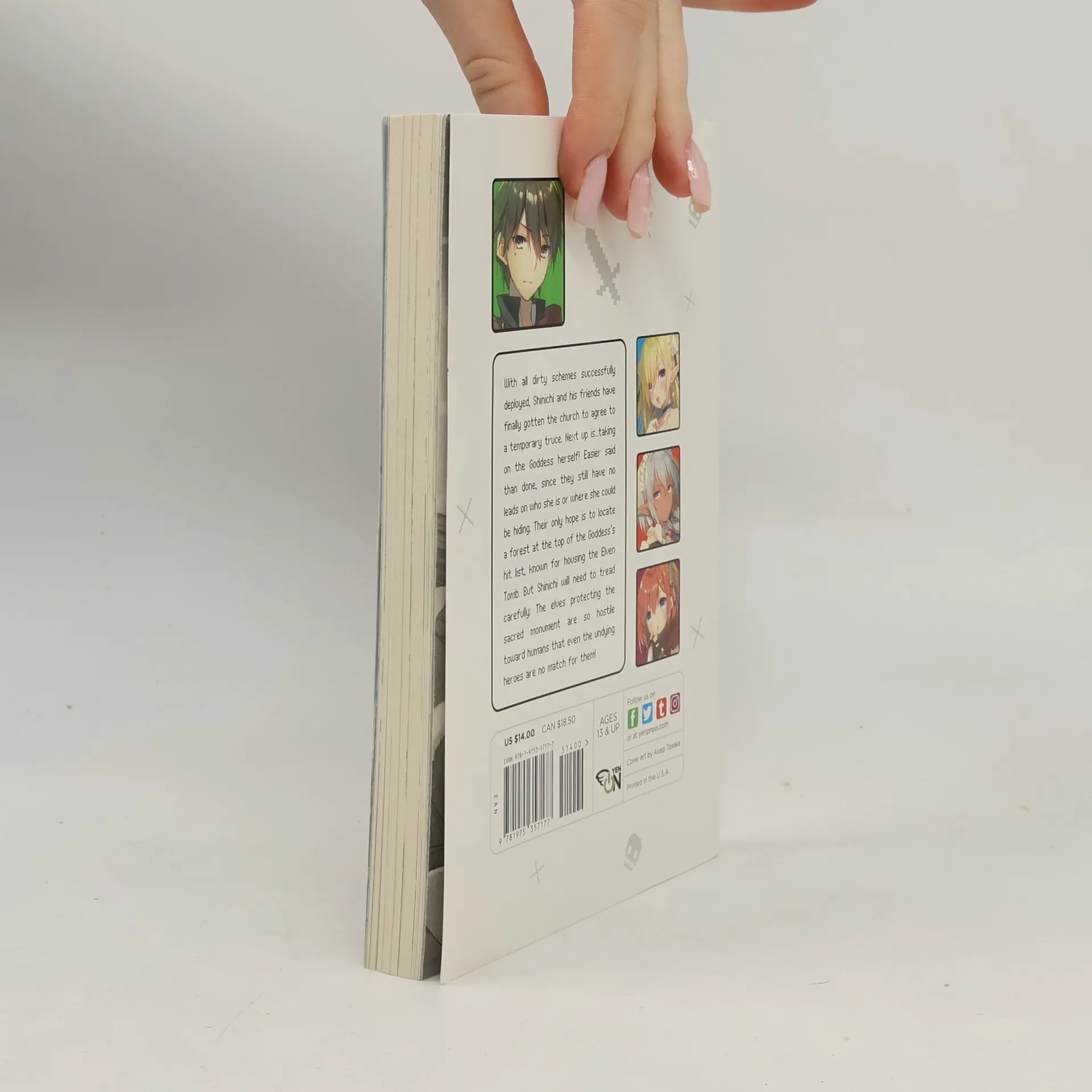 With all dirty schemes successfully deployed, Shinichi has gotten the church to agree to a temporary truce. Now that they're finally off his back, he's ready to go on a journey with his motley crew to take on the Goddess herself! Along the way, they discover a place damned by the Goddess-known as the "grave for the elves." They're curious to know more, but they need to treat lightly: the elves are super hostile to humans, and even the undying heroes are no match for them when it comes to magic!