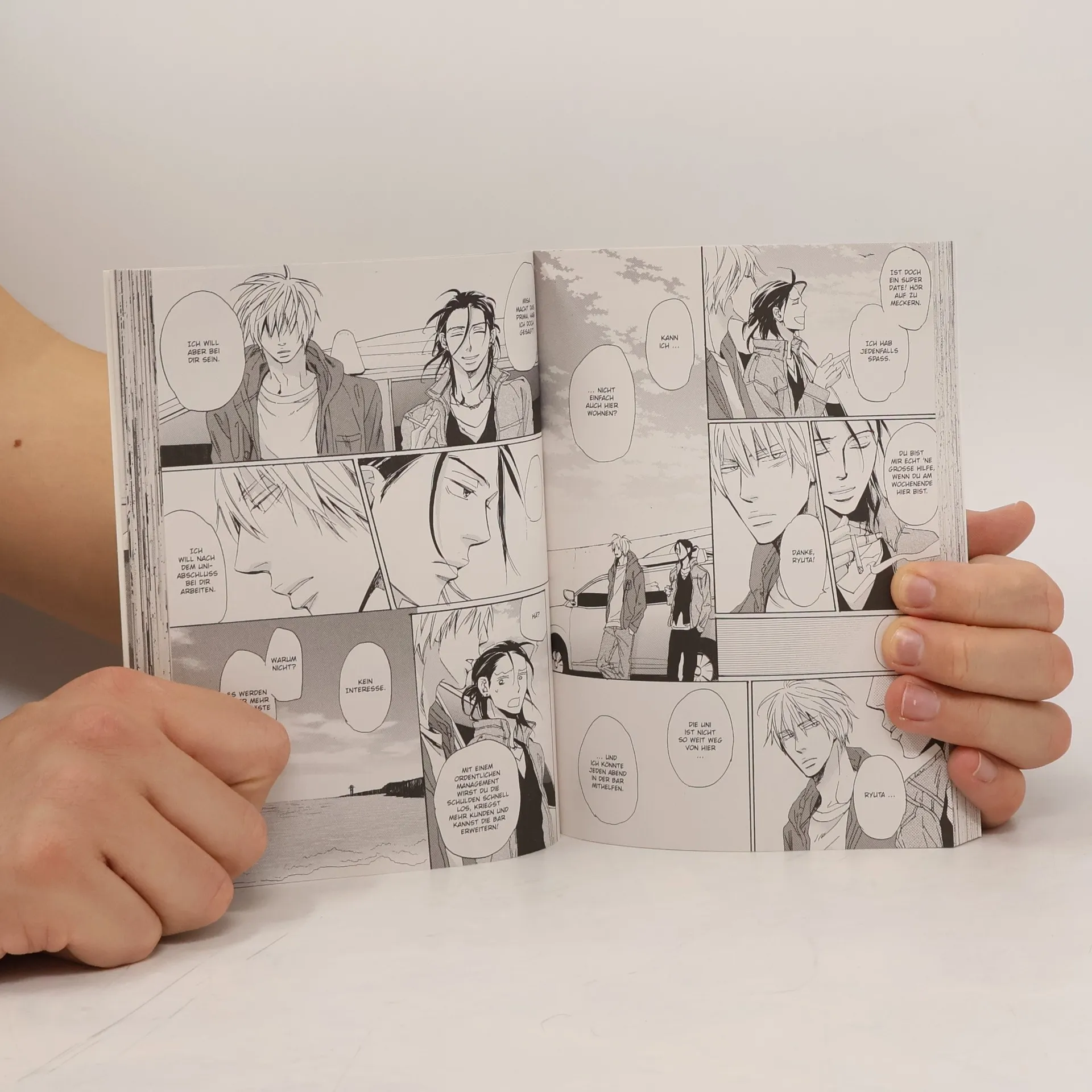 Fünf Jahre schon ist Ryuta heimlich in Naoki verliebt. Aber der war ja immer mit Hana zusammen. Die beiden waren die reinsten Turteltauben. Dennoch kam Ryuta wieder, Sommer für Sommer, um in Naokis Kneipe am Meer auszuhelfen. Doch jetzt ist Hana weg, hat Naoki verlassen. Soll Ryuta ihm sagen, was er für ihn empfindet? Oder verliert er so am Ende den Menschen, der ihm am wichtigsten ist? (Verlagstext). Ab 15