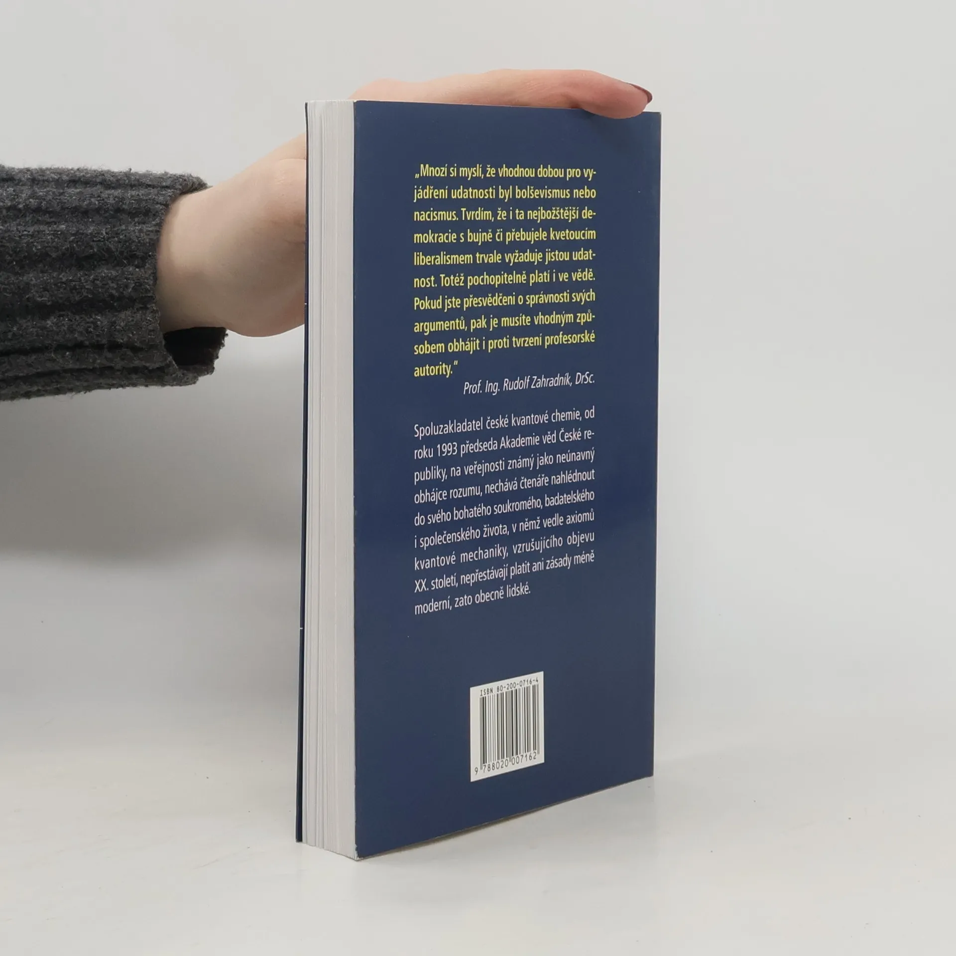 Ing. Rudolf Zahradník DrSc, spoluzakladatel české kvantové chemie, od roku 1993 předseda Akademie věd České republiky, na veřejnosti známý jako neúnavný obhájce rozumu proti pověrám, nechává čtenáře nahlédnout do svého bohatého soukromého, společenského a badatelského života.