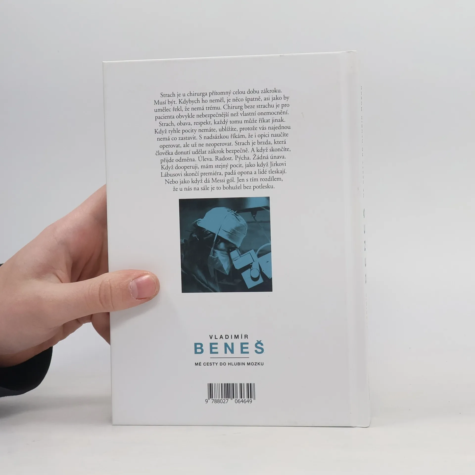 Upřímná zpověď našeho nejznámějšího neurochirurga přináší pohled na život, smrt, naději a zázraky moderní medicíny. Autor se zabývá otázkami o mozku, jeho bolesti a prevenci těžkých onemocnění, jako jsou parkinson, alzheimer či mozkové nádory. Diskutuje o etice sdělování pravdy pacientům a o možnosti rozhodování o vlastním životě. Kniha je rozhovorem s lékařem, který má na svém kontě přes osm tisíc operací a patří k nejlepším na světě. Jeho názory jsou přímé a provokativní, přičemž se nebojí přiznat, že chirurgové mají kromě sebevědomí také strach. Při operacích mozku totiž o životě a smrti rozhodují milimetry. Autor vyjadřuje, že strach je nezbytný, aby chirurg mohl operovat bezpečně, a že bez něj by mohl pacientovi ublížit. Beneš poutavě vypráví o pacientech, doktorech, lékařské etice, víře, eutanazii, výčitkách a radosti z úspěšných operací. Zmiňuje také lékařské seriály, úplatky ve zdravotnictví, studia za minulého režimu a své zážitky z cestování po světě, kde loví brouky s kamarádem. Jeho příběh je kombinací odbornosti, osobních zkušeností a reflexí nad důležitými otázkami medicíny a lidského života.