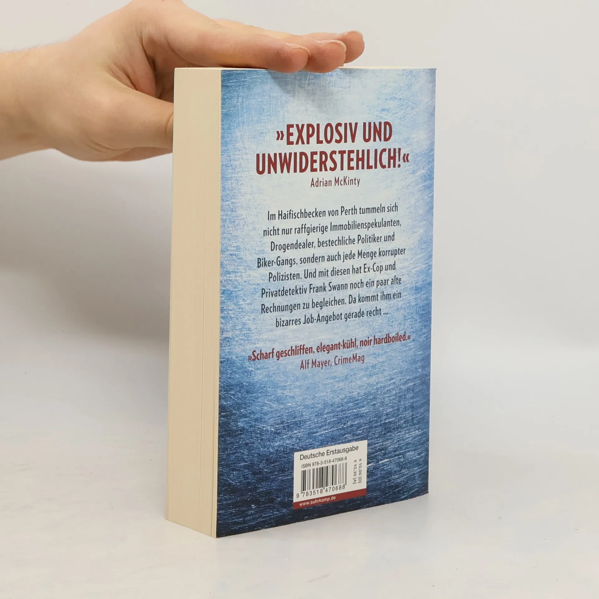 Ex-Cop und Privatdetektiv Frank Swann bekommt ein bizarres Job-Angebot – er soll für den »Ausputzer« des Premierministers von Western Australia den Ausputzer spielen und ein paar politische Ärgernisse beseitigen und sich vor allem um die Security kümmern. Im Grunde will Swann nur mit seiner Frau Marion und seinen Töchtern am Strand liegen, aber irgendwo muss das Geld ja herkommen. Außerdem sieht er die Möglichkeit, noch ein paar alte Rechnungen zu begleichen, denn im Haifischbecken von Perth tummeln sich nicht nur raffgierige Immobilienspekulanten, Drogendealer, ein irrer Bankräuber, bestechliche Politiker und Biker-Gangs, sondern auch jede Menge korrupter Polizisten. Genau die, die Frank Swann seinerzeit mit falschen Anschuldigungen aus dem Verkehr gezogen haben. Stoisch, lakonisch und effektiv macht sich Swann ans große Aufräumen ...