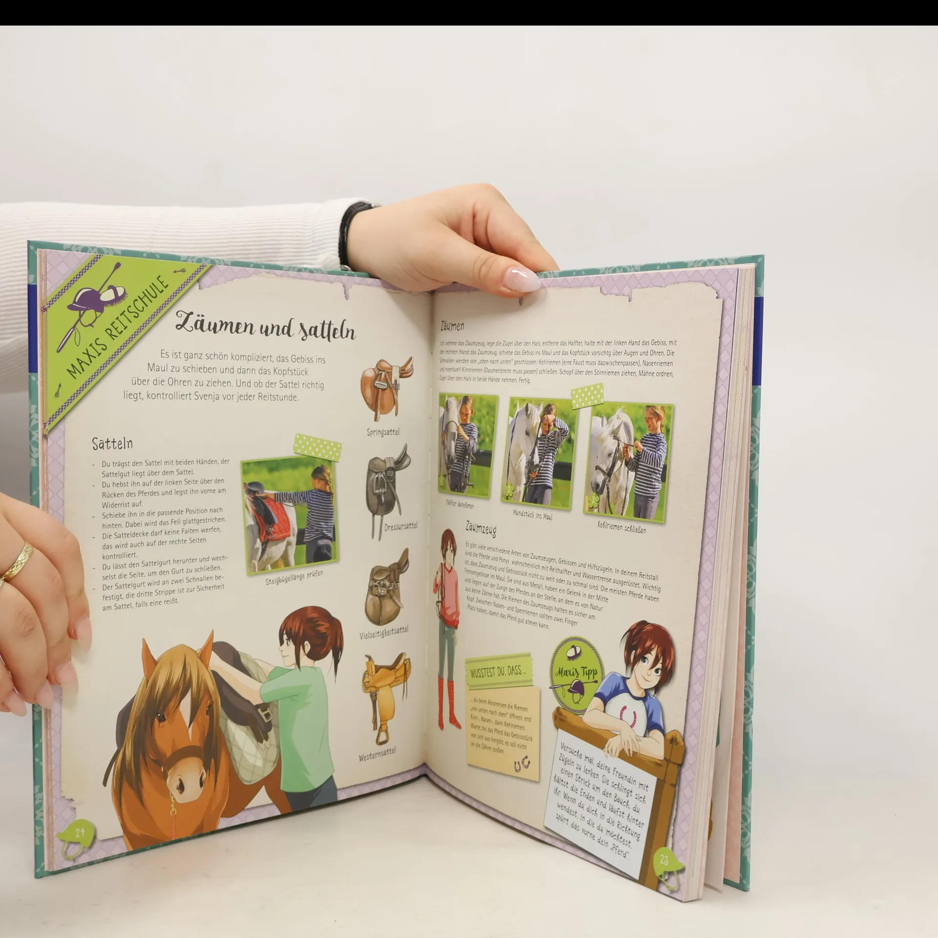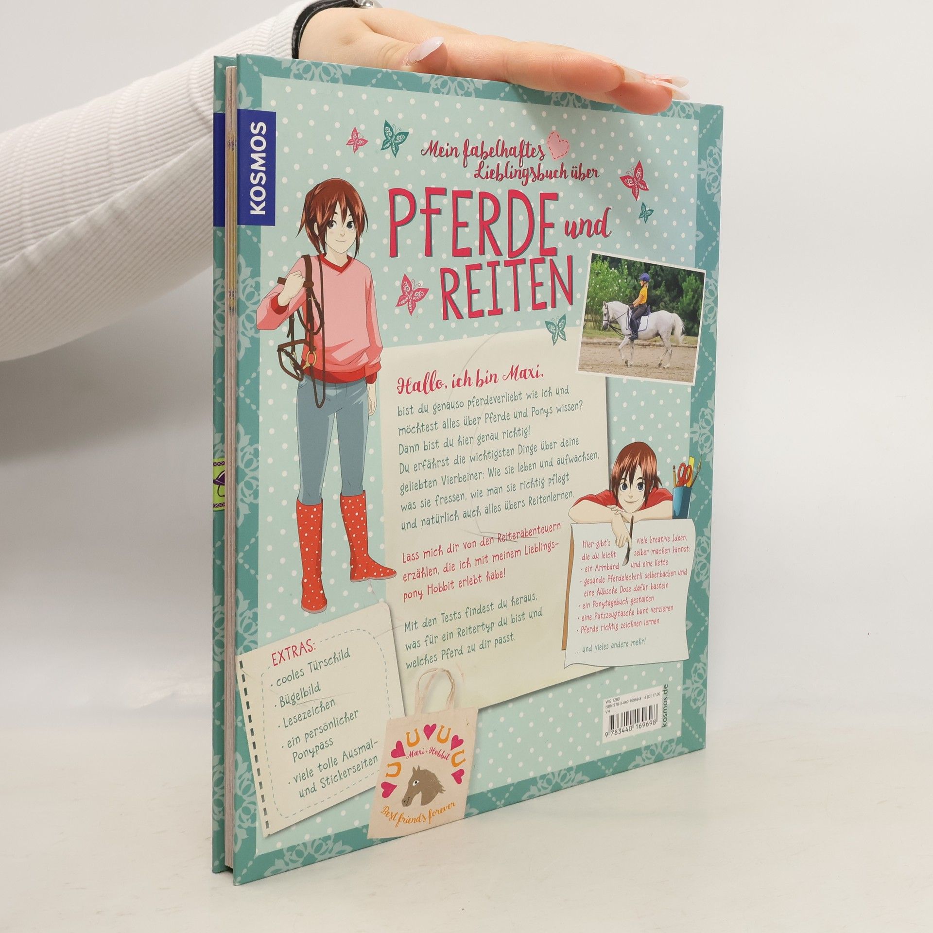 Dieses Mitmachbuch ist ein richtiges Lieblingsbuch für Pferdefans: Alles über Pferde und Reiten, spannendes Lesefutter und viele DIY-Ideen – alles, wofür sich Kinder begeistern. Maxi und ihr Pferd Hobbit freuen sich auf die erste Reitstunde und ihre Leser und Leserinnen sind hautnah dabei. Gemeinsam mit den beiden erleben sie spannende Abenteuer und erfahren dabei ganz viel über Rassen, Pferdesprache und -verhalten und wie man richtig Reiten lernt. Dazu gibt es coole Tests, zum Beispiel „Welcher Reitertyp bin ich?“. Außerdem hat Maxi tolle DIY-Ideen: Pferdeleckerli, Stiftehalter, Pferde-Tagebuch ... alles kinderleicht nachzubasteln. Zusätzlich enthalten sind pferdestarke Extras wie Sticker, Bügelbild, Türschild und Ausmalseiten.