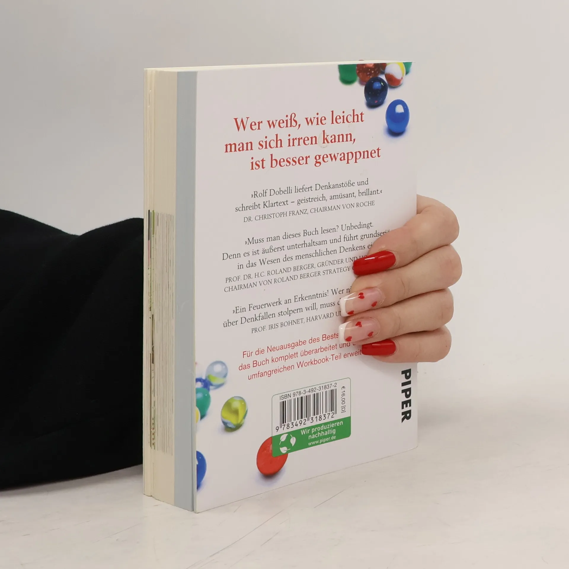 Neuausgabe des Bestsellers: Komplett überarbeitet, neu gestaltet, mit großem Workbook-Teil und zahlreichen Illustrationen! Unser Gehirn ist für das Leben als Jäger und Sammler optimiert. Heute leben wir in einer radikal anderen Welt . Das führt zu systematischen Denkfehlern – die verheerend sein können für unsere Finanzen , unsere Karriere , unser Glück . Rolf Dobelli nimmt die tückischsten »Denkfallen« unter die Lupe, in die wir immer wieder tappen. Und so erfahren wir warum wir unser eigenes Wissen systematisch überschätzen (und andere für dümmer halten, als sie sind), warum etwas nicht deshalb richtiger wird, weil Millionen von Menschen es für richtig halten, warum wir Theorien nachhängen, selbst wenn sie nachweislich falsch sind. Rolf Dobellis Texte sind sowohl inhaltlich ausgesprochen bereichernd als auch ein echtes Lesevergnügen . »Die Bücher des Schweizers Rolf Dobelli machen nicht nur klüger , sondern tatsächlich glücklicher . Das liegt an seinen angenehm unaufgeregten, profunden Ratschlägen.« Denis Scheck, Tagesspiegel »Rolf Dobellis Bücher habe ich nicht nur gelesen, sondern jedes Wort auf der Zunge zergehen lassen .« Frank Elstner