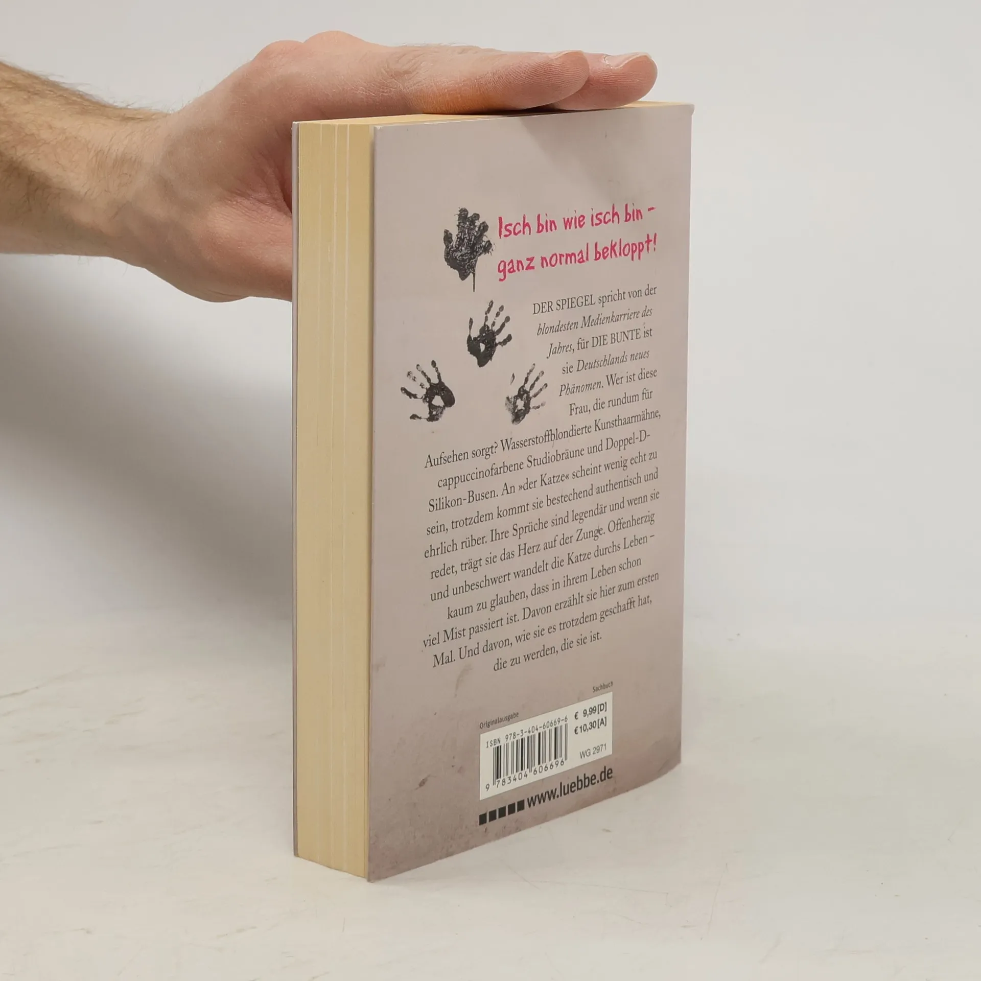 Der Spiegel spricht von der „blondesten Medienkarriere des Jahres“, für die Bunte ist sie Deutschlands neues Phänomen. Wer ist diese Frau, die rundum für Aufsehen sorgt? Wasserstoffblondierte Kunsthaarmähne, cappuccinofarbene Studiobräune und Doppel-D-Silikon-Busen. An „der Katze“ scheint wenig echt zu sein, trotzdem kommt sie bestechend authentisch und ehrlich rüber. Ihre Sprüche sind legendär und wenn sie redet, trägt sie das Herz auf der Zunge. Offenherzig und unbeschwert wandelt die Katze durchs Leben – kaum zu glauben, dass in ihrem Leben schon viel Mist passiert ist. Davon erzählt sie hier zum ersten Mal. Und davon, wie sie es trotzdem geschafft hat, die zu werden, die sie ist.