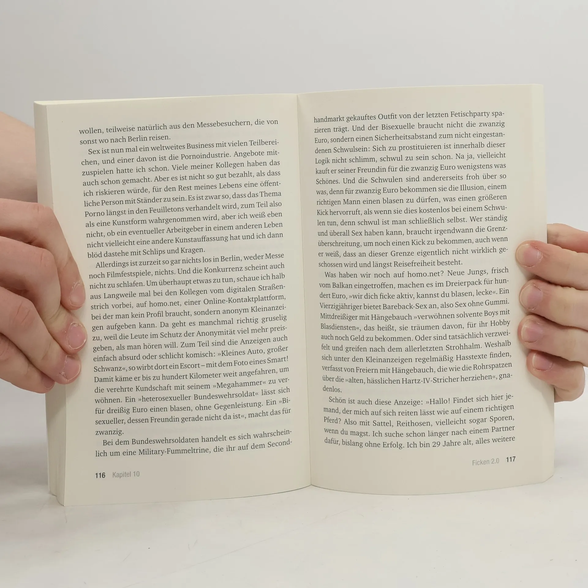 Cem ist ein professioneller Escort. Er lässt sich für Sex bezahlen. Knapp 100 Euro kostet es, sich eine Stunde lang die Bedürfnisse nach schnellem Sex, nach Erniedrigung und Autorität, nach Zuwendung und Hingabe befriedigen zu lassen. Manager, Messebesucher, die Parfümverkäuferin, Hartz-IV-Empfänger oder der konservative Nachbar – sie alle sind seine Kunden. Cem Yildiz erzählt aus einer Welt, in der Exzesse, Gewalt, Drogen und grenzenlose Hoffnungslosigkeit herrschen – und in der Menschen verzweifelt auf der Suche sind nach Geborgenheit und Liebe.