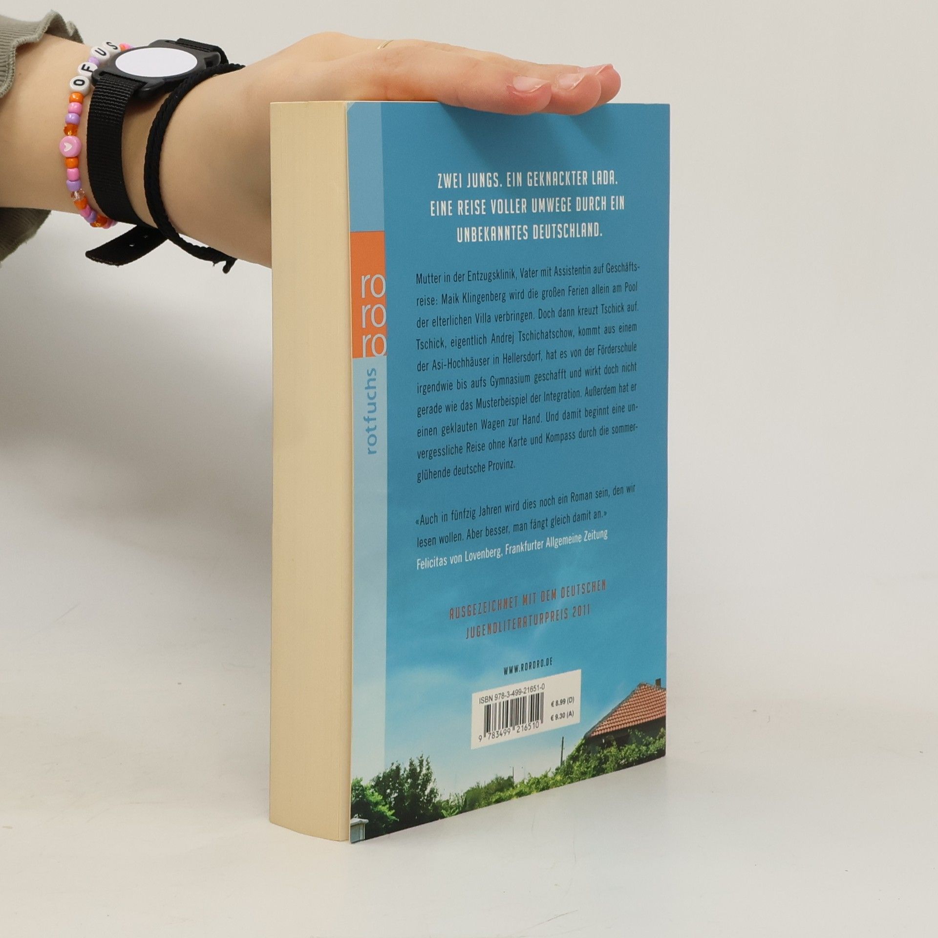 Zwei Jungs. Ein geknackter Lada. Eine Reise voller Umwege durch ein unbekanntes Deutschland.Mutter in der Entzugsklinik, Vater mit Assistentin auf Geschäftsreise: Maik Klingenberg wird die großen Ferien allein am Pool der elterlichen Villa verbringen. Doch dann kreuzt Tschick auf. Tschick, eigentlich Andrej Tschichatschow, kommt aus einem der Asi-Hochhäuser in Hellersdorf, hat es von der Förderschule irgendwie bis aufs Gymnasium geschafft und wirkt doch nicht gerade wie das Musterbeispiel der Integration. Außerdem hat er einen geklauten Wagen zur Hand. Und damit beginnt eine unvergessliche Reise ohne Karte und Kompass durch die sommerglühende deutsche Provinz.«Auch in fünfzig Jahren wird dies noch ein Roman sein, den wir lesen wollen. Aber besser, man fängt gleich damit an.» Felicitas von Lovenberg, Frankfurter Allgemeine ZeitungAusgezeichnet mit dem Deutschen Jugendliteraturpreis 2011
