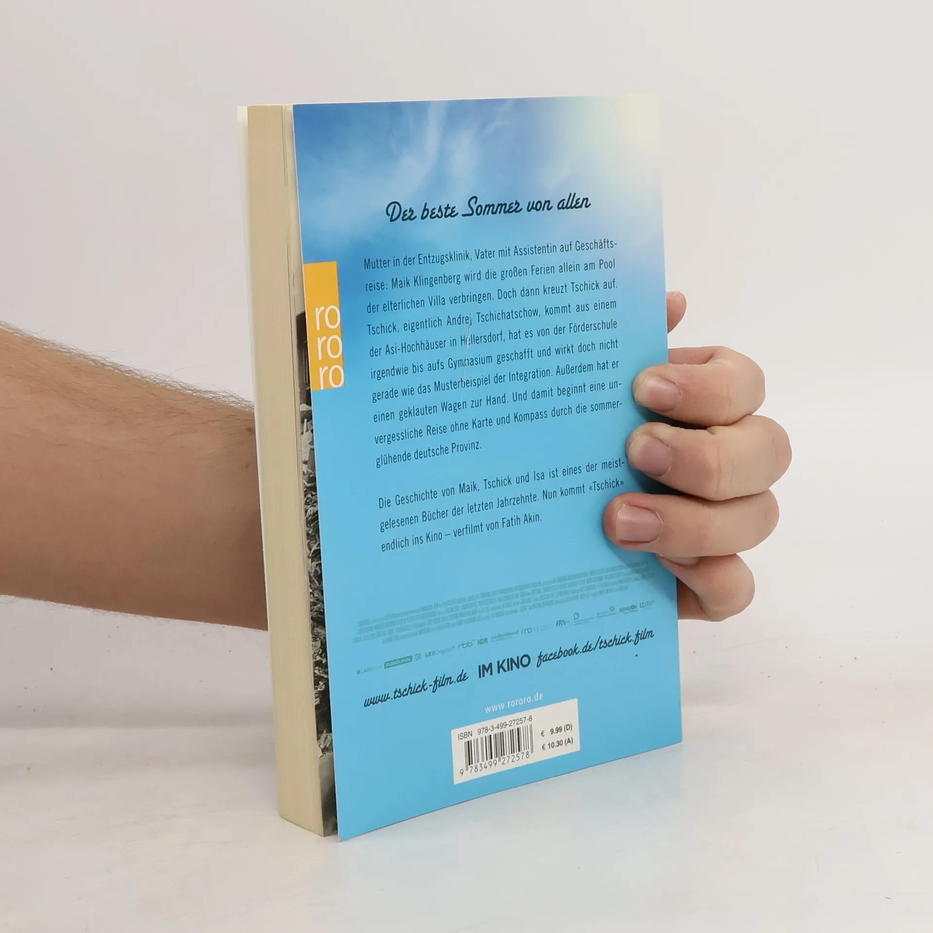 Der beste Sommer von allenMutter in der Entzugsklinik, Vater mit Assistentin auf Geschäftsreise: Maik Klingenberg wird die großen Ferien allein am Pool der elterlichen Villa verbringen. Doch dann kreuzt Tschick auf. Tschick, eigentlich Andrej Tschichatschow, kommt aus einem der Asi-Hochhäuser in Hellersdorf, hat es von der Förderschule irgendwie bis aufs Gymnasium geschafft und wirkt doch nicht gerade wie das Musterbeispiel der Integration. Außerdem hat er einen geklauten Wagen zur Hand. Und damit beginnt eine unvergessliche Reise ohne Karte und Kompass durch die sommerglühende deutsche Provinz. Die Geschichte von Maik, Tschick und Isa ist eines der meistgelesenen Bücher der letzten Jahrzehnte. Nun kommt «Tschick» endlich ins Kino - verfilmt von Fatih Akin