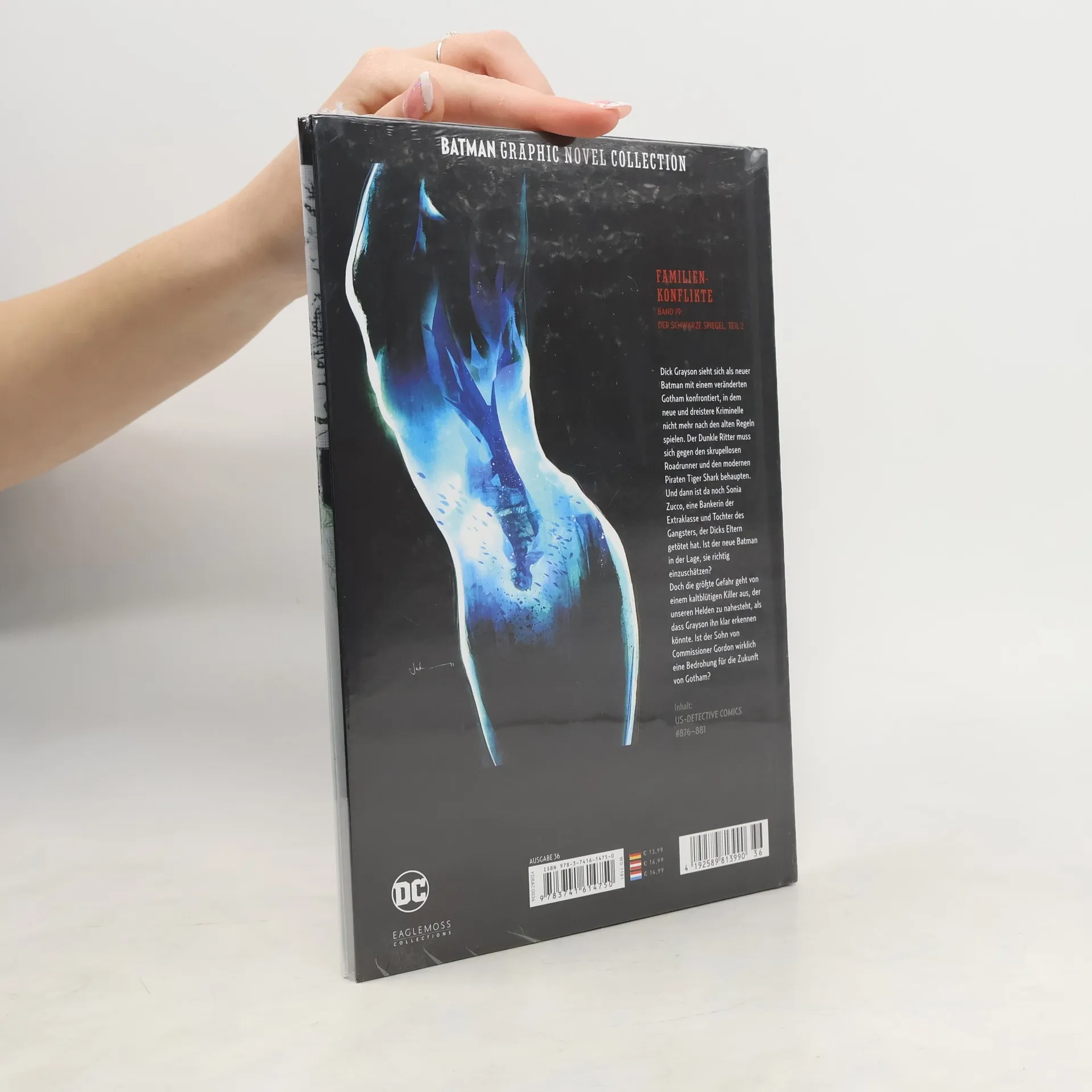 FAMILIENKONFLIKTE BAND 19: DER SCHWARZE SPIEGEL, TEIL 2Dick Grayson sieht sich als neuer Batman mit einem veränderten Gotham konfrontiert, in dem neue und dreistere Kriminelle nicht mehr nach den alten Regeln spielen. Der Dunkle Ritter muss sich gegen den skrupellosen Roadrunner und den modernen Piraten Tiger Shark behaupten. Und dann ist da noch Sonia Zucco, eine Bankerin der Extraklasse und Tochter des Gangsters, der Dicks Eltern getötet hat. Ist der neue Batman in der Lage, sie richtig einzuschätzen?Doch die größte Gefahr geht von einem kaltblütigen Killer aus, der unseren Helden zu nahesteht, als dass Grayson ihn klar erkennen könnte. Ist der Sohn von Commissioner Gordon wirklich eine Bedrohung für die Zukunft von Gotham?