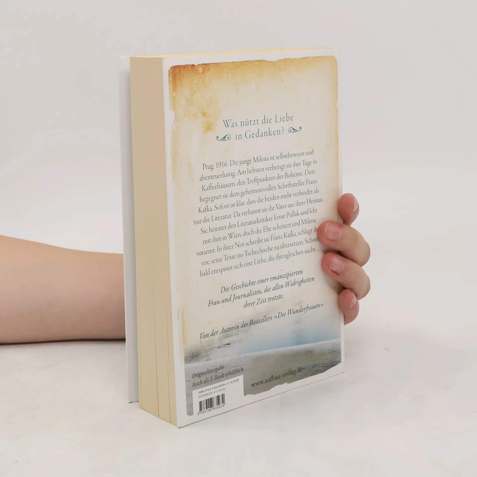 Was nützt die Liebe in Gedanken? Prag, 1916: Die junge Milena ist selbstbewusst und abenteuerlustig. Am liebsten verbringt sie ihre Tage in Kaffeehäusern, den Treffpunkten der Bohème. Dort begegnet sie dem geheimnisvollen Schriftsteller Franz Kafka. Sofort ist klar, dass die beiden mehr verbindet als nur die Literatur. Da verbannt sie ihr Vater aus ihrer Heimat. Sie heiratet den Literaturkritiker Ernst Pollak und lebt mit ihm in Wien, doch die Ehe scheitert und Milena verarmt. In ihrer Not schreibt sie Franz Kafka, schlägt ihm vor, seine Texte ins Tschechische zu übersetzen. Schon bald entspinnt sich eine Liebe, die ihresgleichen sucht … Die Geschichte einer emanzipierten Frau und Journalistin, die allen Widrigkeiten ihrer Zeit trotzte. Von der Autorin des Bestsellers „Die Wunderfrauen“