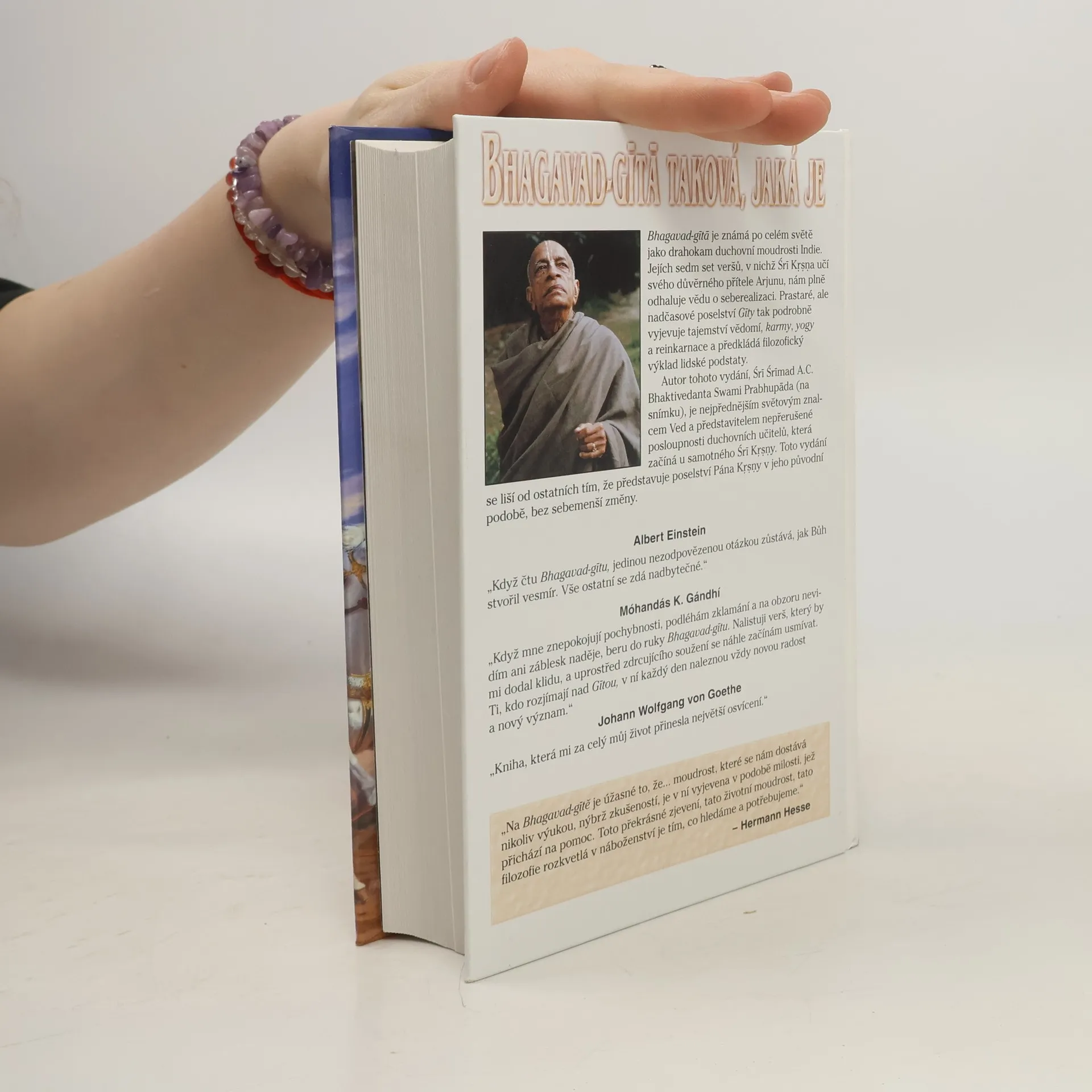 Šrí Krišna přednesl sedm set veršů Gíty, aby vedl svého důvěrného přítele Ardžunu v nelehké životní situaci. Moudrost Bhagavad-gíty ale nebyla určena jen jemu. Všichni mají stejné právo ji vyslyšet, neboť přináší poznání o povaze člověka, přírody, Absolutní Pravdy, živých bytostí i o jejich vztahu k Nejvyšší Duši. Šrí Krišna učí Ardžunu o způsobu, jakým dosáhnout seberealizace, která je skutečným smyslem lidského života a přináší vše, po čem každý ve své podstatě touží. Aby byl celý překlad autentický, vědecký a měl zcela jasný smysl, Šríla Prabhupáda uvádí nejprve původní text v sanskritu, jeho přepis do latinského písma, dále překlady jednotlivých slov, celý překlad verše a nakonec podrobný výklad vycházející z komentářů velkých učitelů (tzv. áčárjů). Kniha je doplněna vysvětlivkami ke čtení sanskritu (sanskritskou abecedou a klíčem k výslovnosti sanskritu), dále rejstříkem veršů z Bhagavad-gíty i citovaných veršů a všeobecným rejstříkem. Bhagavad-gítá taková, jaká je mimoto obsahuje slovník použitých sanskritských výrazů.