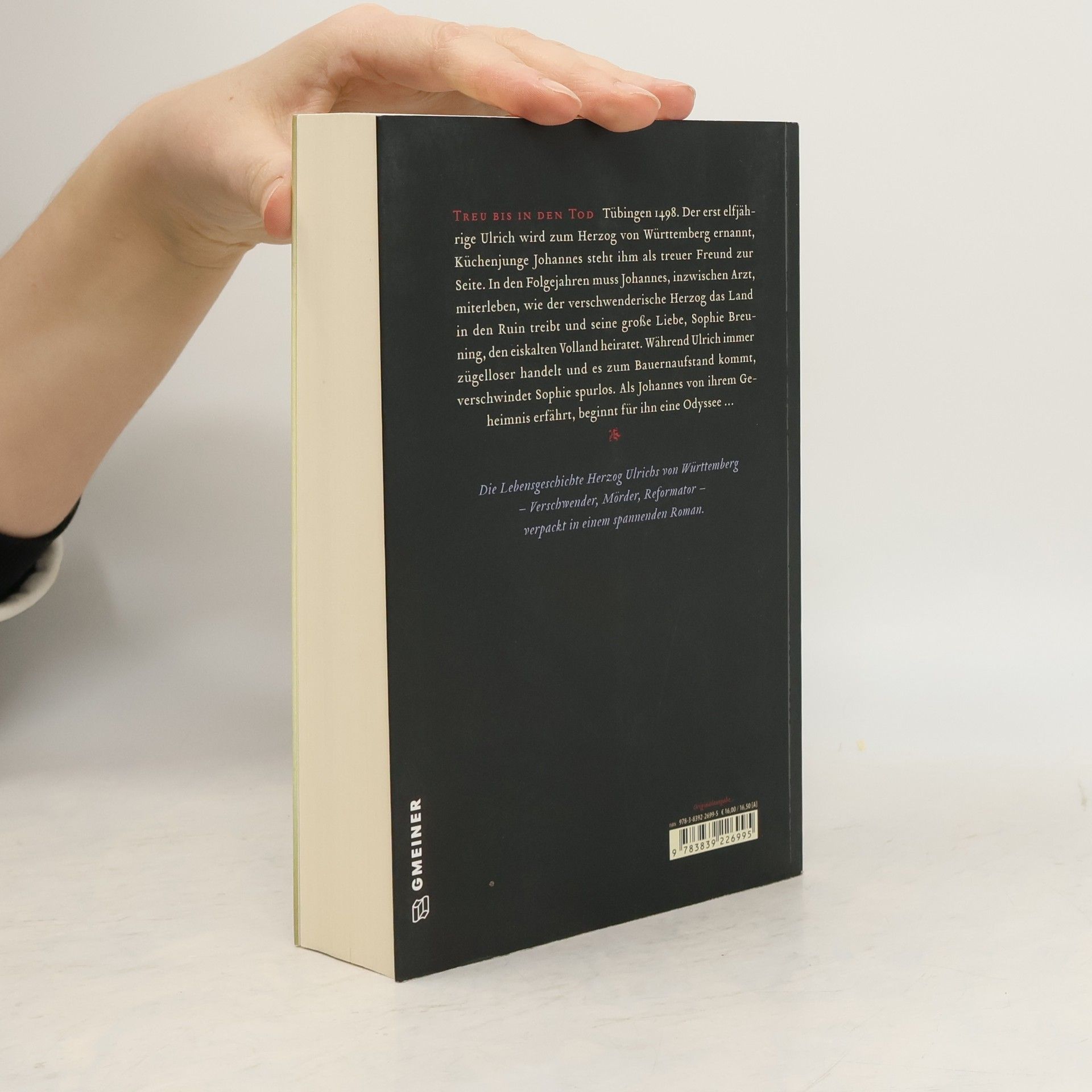 Tübingen 1498. Der erst elfjährige Ulrich wird zum Herzog von Württemberg ernannt, Küchenjunge Johannes steht ihm als treuer Freund zur Seite. In den Folgejahren muss Johannes, inzwischen Arzt, miterleben, wie der verschwenderische Herzog das Land in den Ruin treibt und seine große Liebe, Sophie Breuning, den eiskalten Volland heiratet. Während Ulrich immer zügelloser handelt und es zum Bauernaufstand kommt, verschwindet Sophie spurlos. Als Johannes von ihrem Geheimnis erfährt, beginnt für ihn eine Odyssee …
