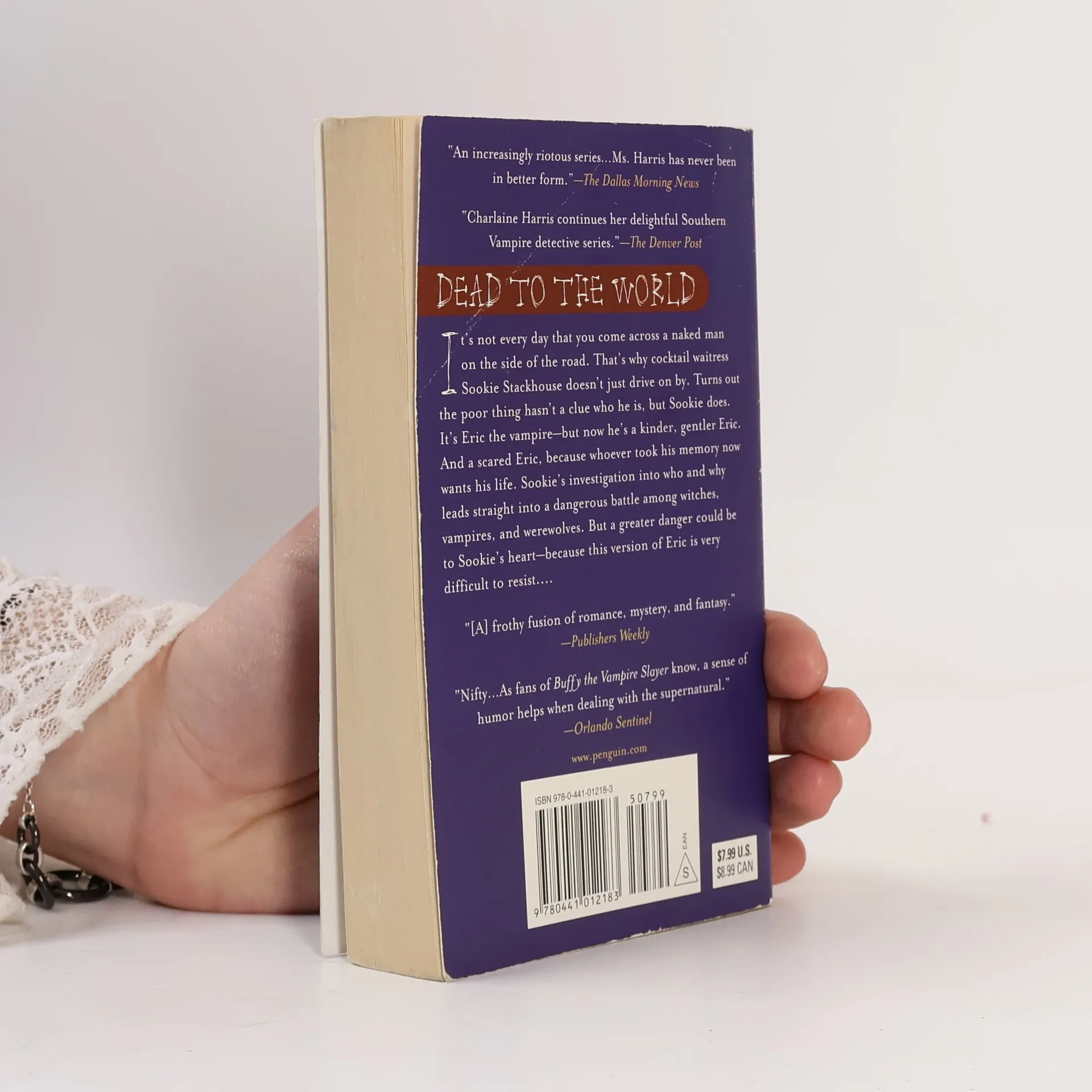 Sookie Stackhouse is a cocktail waitress in Bon Temps, Louisiana. She has only a few close friends, because not everyone appreciates Sookie’s gift: she can read minds. That’s not exactly every man’s idea of date bait – unless they’re undead; vampires and the like can be tough to read. And that’s just the kind of guy Sookie’s been looking for. Maybe that’s why, when she comes across a naked vampire, she doesn’t just drive on by. He hasn’t got a clue who he is, but Sookie has: Eric looks just as scary and sexy – and dead – as ever. But now he has amnesia, he’s sweet, vulnerable, and in need of Sookie’s help – because whoever took his memory now wants his life.