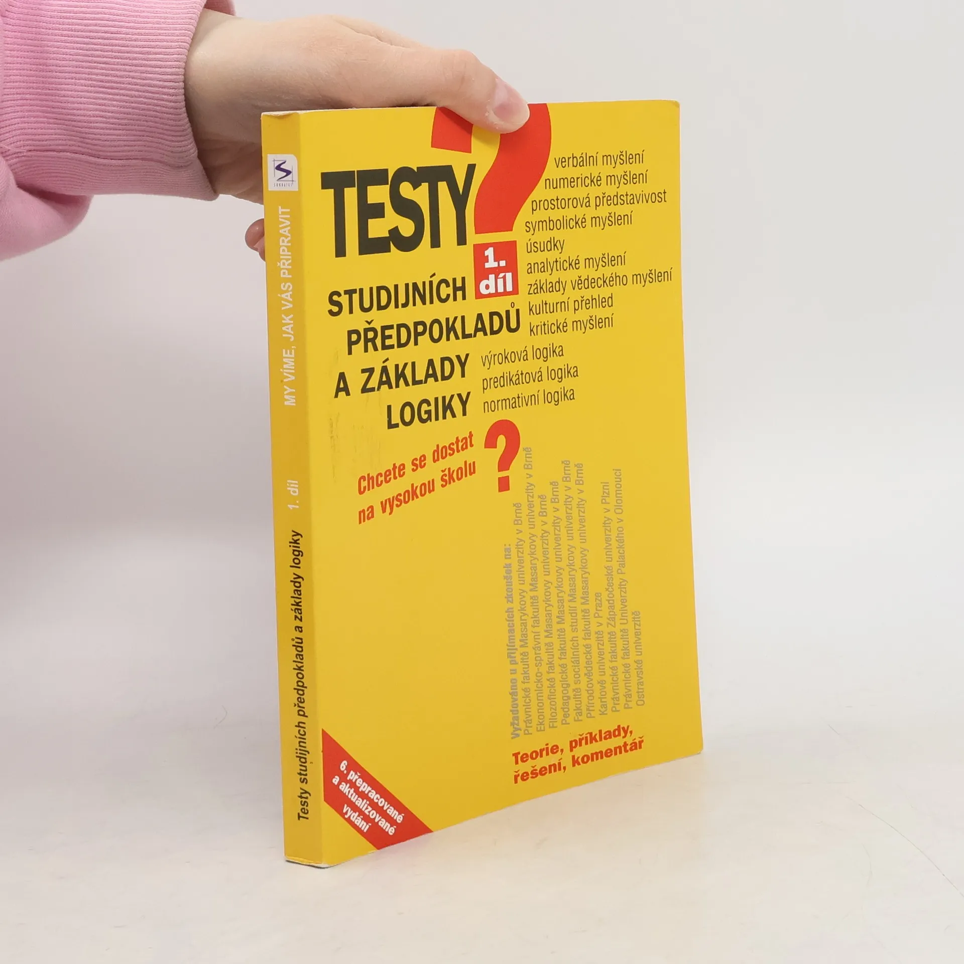 Soubor testů z oblastí verbálního, numerického, symbolického a kritického myšlení i predikátové, výrokové a normativní logiky pro přijímací zkoušky na VŠ. Kniha obsahuje řešené testové příklady z těchto oblastí: verbální myšlení, numerické myšlení, prostorová představivost a symbolické myšlení, základy analytického, vědeckého a kritického myšlení. Další kapitoly knihy jsou věnovány základům výrokové, predikátové a normativní logiky. Teoretická vysvětlení doplňují příklady. Cílem publikace má být otestování schopností a doplnění znalostí pro zvládnutí testů obecných studijních předpokladů při přijímacích zkouškách na VŠ. Dle autorů především požadováno na právnických fakultách (MU v Brně, KU v Praze a UP v Olomouci), na Fakultách ekonomicko-správní, pedagogické, přírodovědecké a lékařské MU v Brně). (www.mlp.cz)