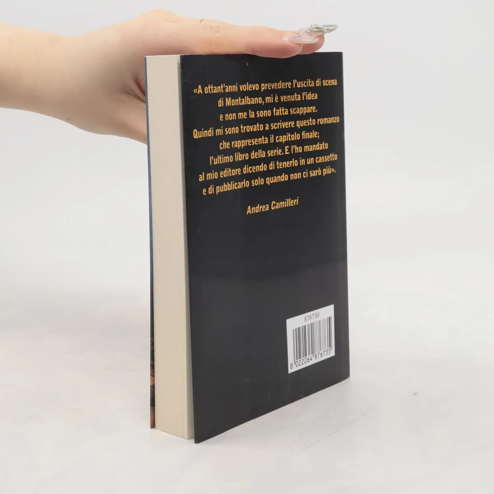 Il commissario si trova a dover risolvere un omicidio che coinvolge un giovane direttore di banca, testimoniato da tre amici intimi della vittima. Inizialmente, il caso sembra chiaro, ma Montalbano intuisce che nulla è come appare. Con uno sguardo acuto, esplora percorsi mentali complessi, analizzando e collegando indizi, mentre le indagini si ampliano. Si imbatte in personaggi eccentrici e in un secondo delitto, portando a una svolta sorprendente. Montalbano vive una solitudine riflessiva, con Livia lontana e Augello assente per motivi familiari, ma trova supporto nell'anagrafologo Fazio e nel chiassoso Catarella. Le sue indagini sono accompagnate da pensieri inquieti e ossessioni, che lo affaticano e infastidiscono. Tuttavia, il suo stile investigativo rimane inconfondibile, caratterizzato da battute argute e colpi di scena. Montalbano affronta una sfida con l'attore che lo interpreta in TV, consapevole che quest'ultimo ha un pubblico molto più vasto e conosce già il finale. La tensione tra il Personaggio e l'Autore, che scrive la sua storia, aggiunge un tocco pirandelliano. Quest'ultima indagine è stata scritta tra il 2004 e il 2005 e linguisticamente aggiornata nel 2016, riflettendo l'evoluzione del vigatese, un dialetto inventato che si è arricchito nel tempo.