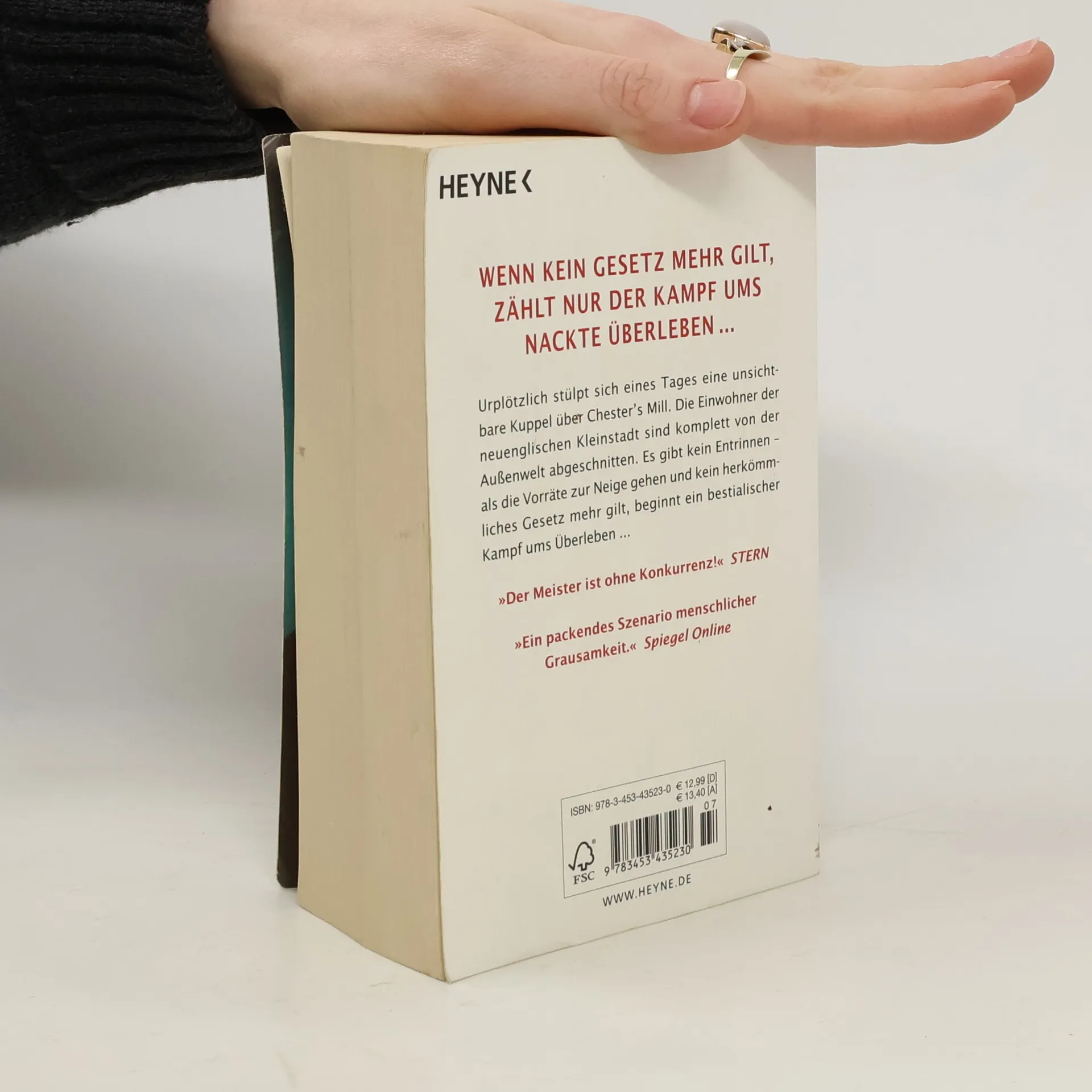 Wenn kein Gesetz mehr gilt, zählt nur der Kampf ums nackte Überleben... Mit „Die Arena” legt Stephen King ein faszinierendes neues Monumentalwerk vor – seinen umfangreichsten und fesselndsten Roman seit „The Stand – Das letzte Gefecht”. Urplötzlich stülpt sich eines Tages wie eine unsichtbare Kuppel ein undurchdringliches Kraftfeld über Chester’s Mill. Die Einwohner der neuenglischen Kleinstadt sind komplett von ihrer Umwelt abgeschnitten. Und auf einmal gilt kein herkömmliches Gesetz mehr ...