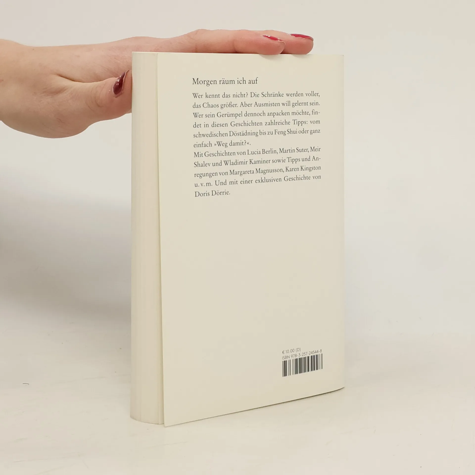 Wer kennt das nicht? Die Schränke werden voller, das Chaos größer. Aber Ausmisten will gelernt sein. Wer sein Gerümpel dennoch anpacken möchte, findet in diesen Geschichten zahlreiche Tipps: Vom schwedischen Döstädning über Karen Kingstons Feng Shui bis hin zum Minimalismus für Fortgeschrittene. Mit Geschichten von Lucia Berlin, Martin Suter, Wladimir Kaminer und Meir Shalev sowie Tipps und Anregungen von Margareta Magnusson, Karen Kingston u.v.m. Und mit einer exklusiven Geschichte von Doris Dörrie.