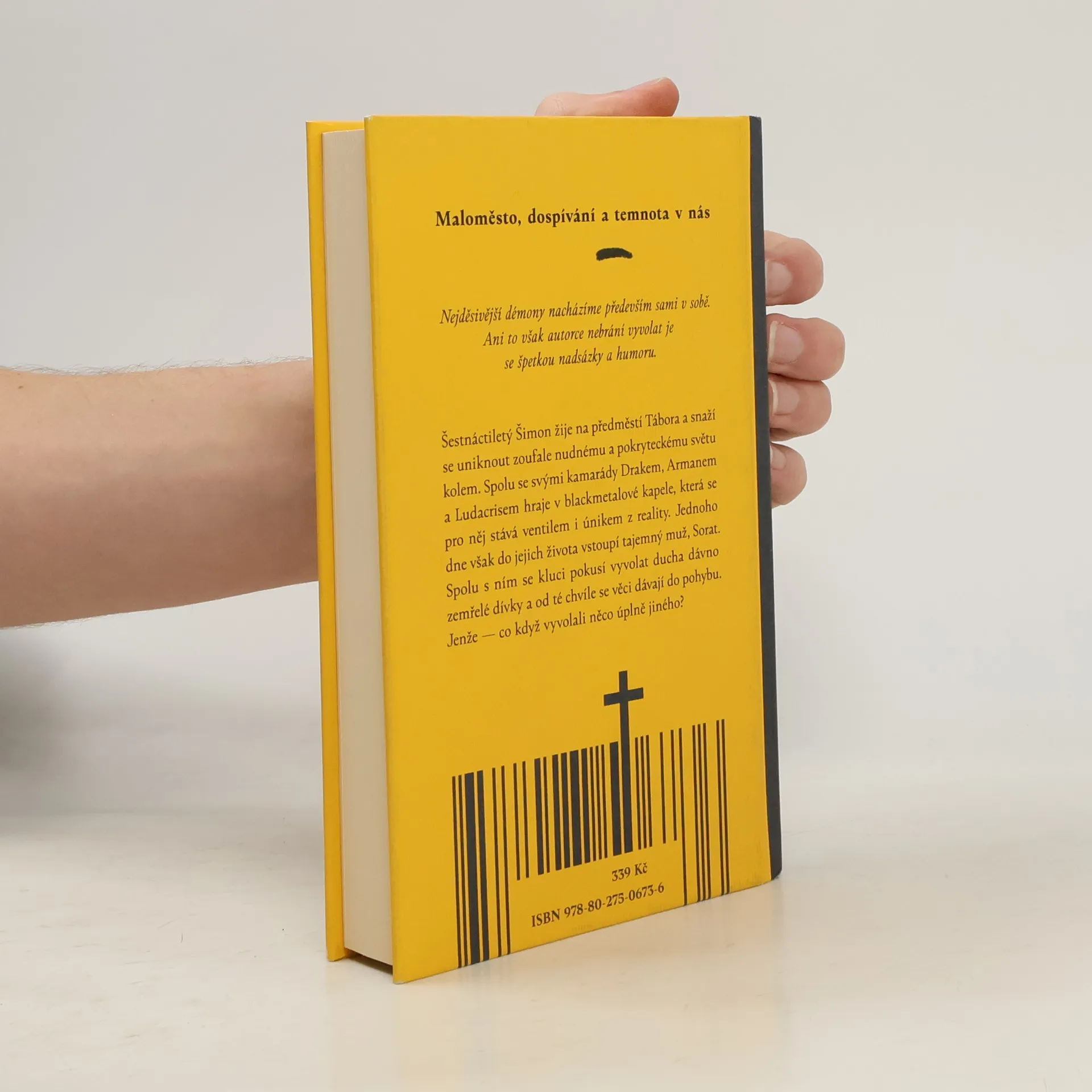 Maloměsto, dospívání a temnota v nás. Šestnáctiletý Šimon žije na předměstí Tábora a snaží se uniknout zoufale nudnému a pokryteckému světu kolem. Spolu se svými kamarády Drakem, Armanem a Ludacrisem hraje v blackmetalové kapele, která se pro něj stává ventilem i únikem z reality. Jednoho dne však do jejich života vstoupí tajemný muž, Sorat. Spolu s ním se kluci pokusí vyvolat ducha dávno zemřelé dívky a od té chvíle se věci dávají do pohybu. Jenže — co když vyvolali něco úplně jiného? Nejděsivější démony nacházíme především sami v sobě. Ani to však autorce nebrání vyvolat je se špetkou nadsázky a humoru.