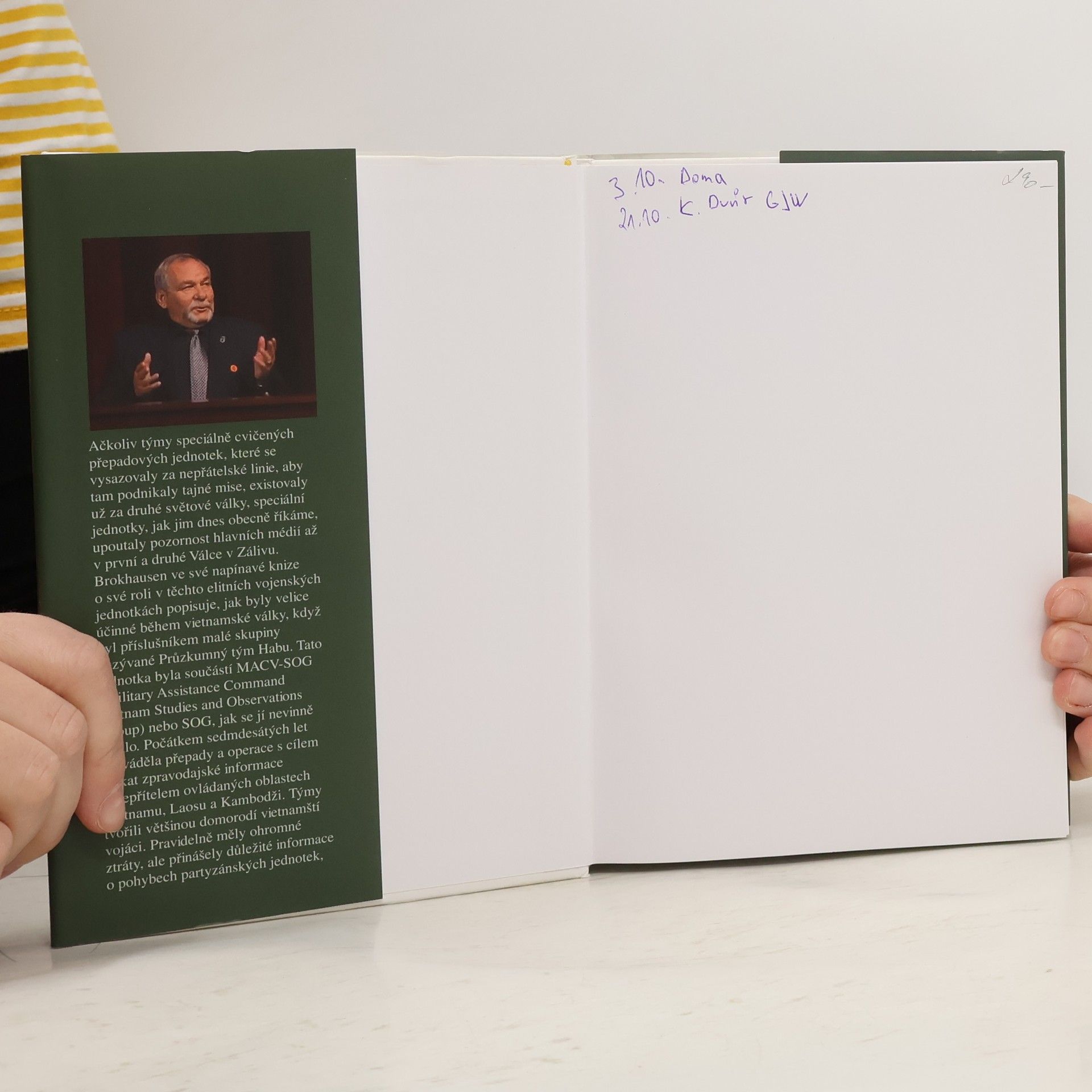 Týmy speciálně cvičených přepadových jednotek, které operovaly za nepřátelskými liniemi, existovaly už během druhé světové války, avšak větší pozornost získaly až během první a druhé Války v Zálivu. Brokhausen ve své napínavé knize popisuje svou roli v elitních vojenských jednotkách, které byly velmi účinné během vietnamské války, konkrétně jako člen Průzkumného týmu Habu, součásti MACV-SOG. V počátku sedmdesátých let prováděla tato jednotka přepady a operace za účelem získání zpravodajských informací v oblastech Vietnamu, Laosu a Kambodži. Týmy tvořili převážně domorodí vietnamští vojáci, kteří čelili vysokým ztrátám, ale přinášeli cenné informace o pohybech partyzánských jednotek, což výrazně pomáhalo americkému vedení války. Brokhausen barvitě líčí, jaké to je procházet odlehlou džunglí pod neustálou hrozbou nepřátelské palby. Jeho tým získal jedno z nejvyšších počtů vyznamenání za statečnost v historii americké armády, avšak za cenu neuvěřitelných ztrát. Tyto mise by dnes byly považovány za sebevražedné, ale v roce 1970 se tito muži odvážně spojovali se svými místními spojenci – Montagnardy, Vietnamci a čínskými Nungy – a den za dnem čelili těmto výzvám.
