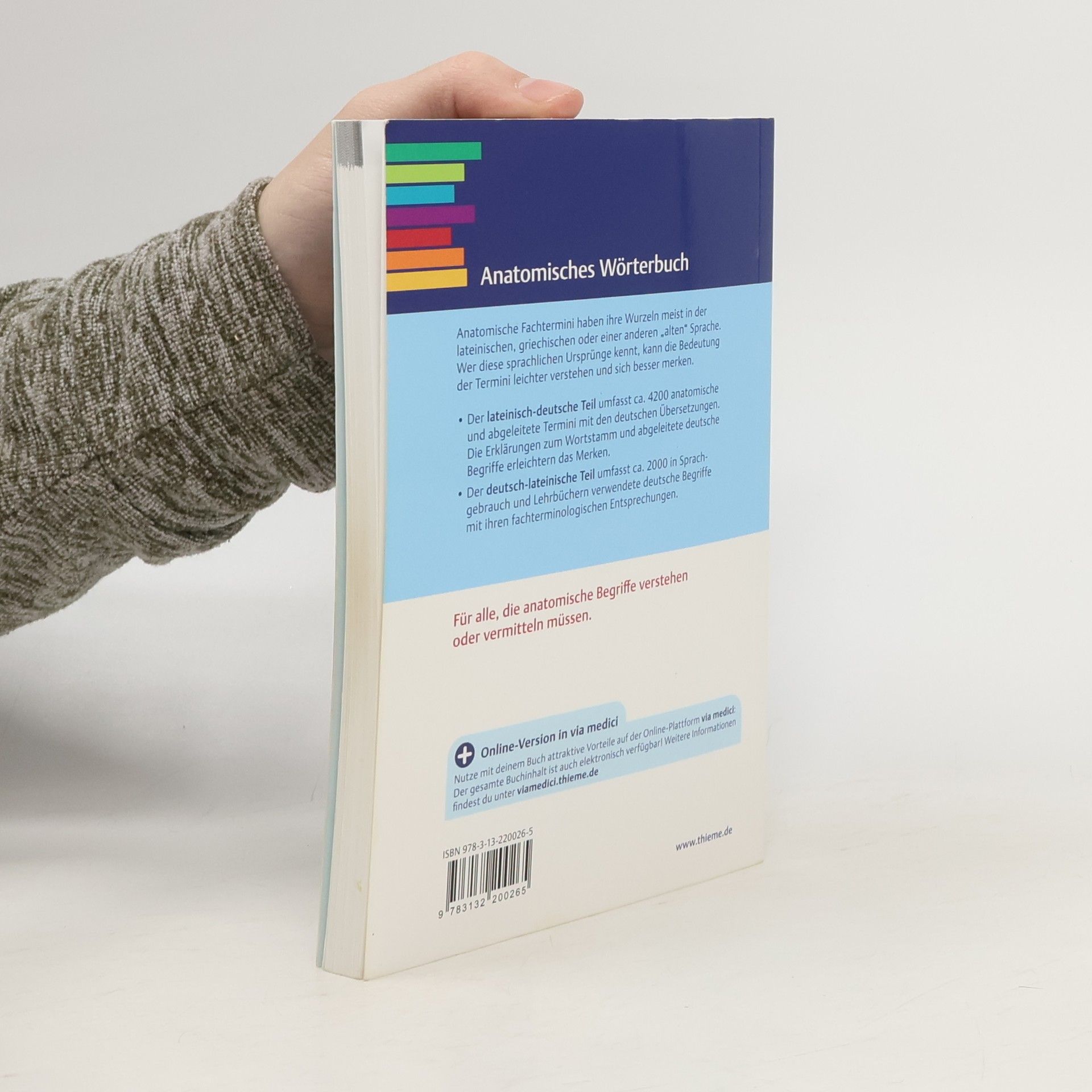 Anatomische Fachtermini haben ihre Wurzeln meist in der lateinischen, griechischen oder einer anderen "alten" Sprache. Wer diese sprachlichen Ursprünge kennt, kann die Bedeutung der Termini leichter verstehen und sich besser merken.- Der lateinisch-deutsche Teil umfasst ca. 4200 anatomische und abgeleitete Termini mit den deutschen Übersetzungen. Die Erklärungen zum Wortstamm und abgeleitete deutsche Begriffe erleichtern das Merken.- Der deutsch-lateinische Teil umfasst ca. 2000 in Sprachgebrauch und Lehrbüchern verwendete deutsche Begriffe mit ihren fachterminologischen Entsprechungen.Für alle, die anatomische Begriffe verstehen oder vermitteln müssen.