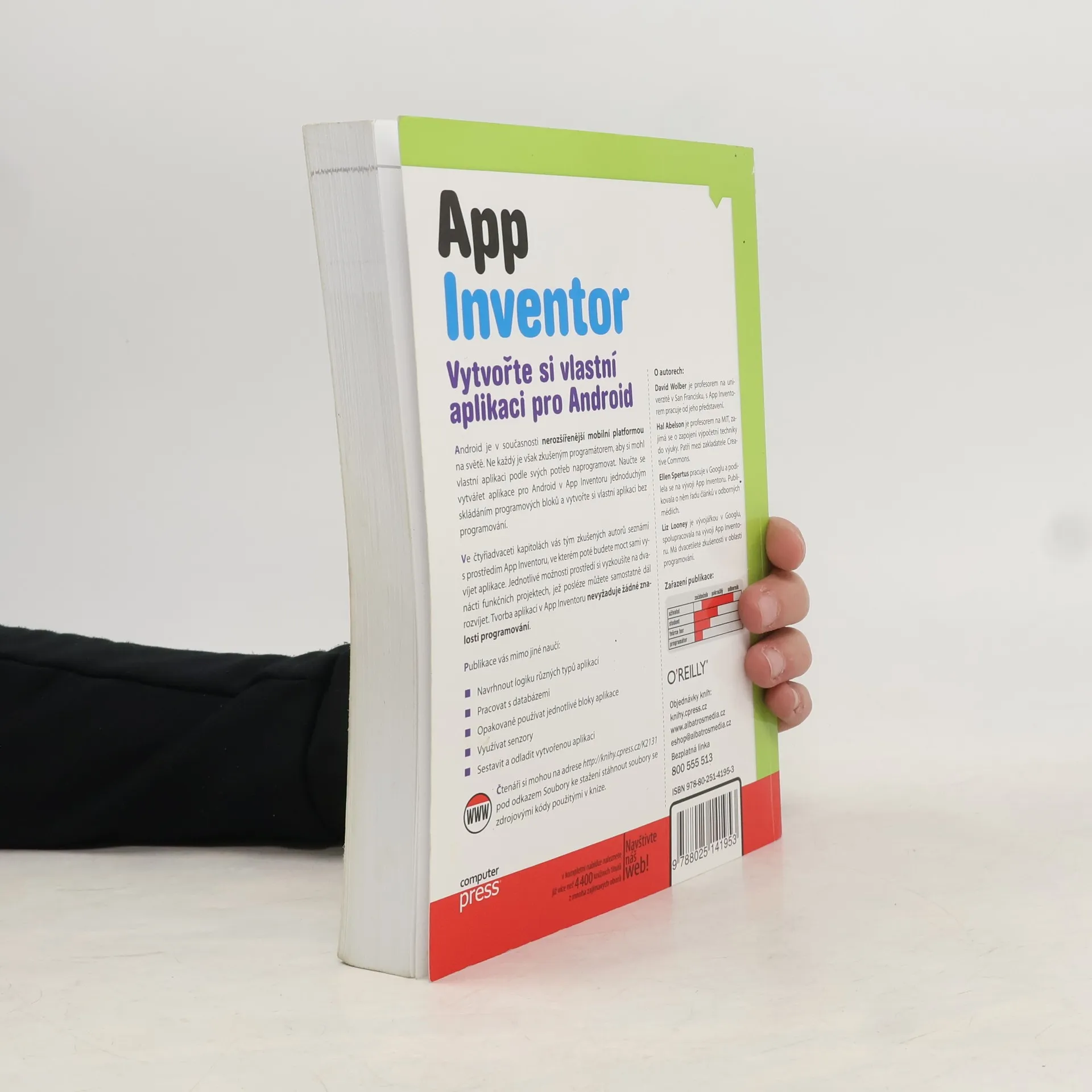 Android je v současnosti nerozšířenější mobilní platformou na světě. Ne každý je však zkušeným programátorem, aby si mohl vlastní aplikaci podle svých potřeb naprogramovat. Naučte se vytvářet aplikace pro Android v App Inventoru jednoduchým skládáním programových bloků a vytvořte si vlastní aplikaci bez programování. Ve čtyřiadvaceti kapitolách vás tým zkušených autorů seznámí s prostředím App Inventoru, ve kterém poté budete moct sami vyvíjet aplikace. Jednotlivé možnosti prostředí si vyzkoušíte na dvanácti funkčních projektech, jež posléze můžete samostatně dál rozvíjet. Tvorba aplikací v App Inventoru nevyžaduje žádné znalosti programování.