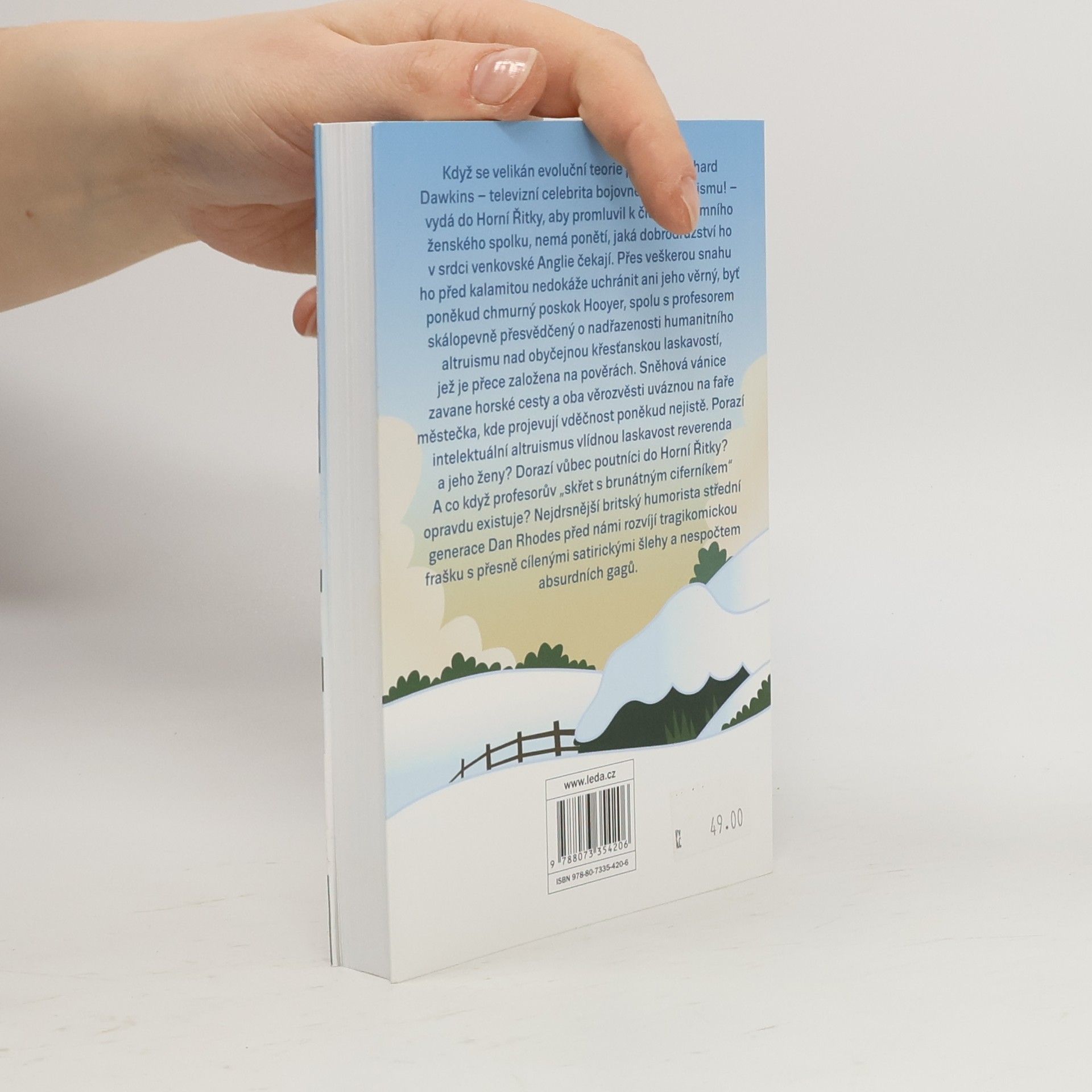 Když se velikán evoluční teorie profesor Richard Dawkins – televizní celebrita bojovného humanismu! – vydá do Horní Řitky, aby promluvil k členkám tamního ženského spolku, nemá ponětí, jaká dobrodružství ho v srdci venkovské Anglie čekají. Přes veškerou snahu ho před kalamitou nedokáže uchránit ani jeho věrný, byť poněkud chmurný poskok Hooyer, spolu s profesorem skálopevně přesvědčený o nadřazenosti humanitního altruismu nad obyčejnou křesťanskou laskavostí, jež je přece založena na pověrách. Sněhová vánice zavane horské cesty a oba věrozvěsti uváznou na faře městečka, kde projevují vděčnost poněkud nejistě. Porazí intelektuální altruismus vlídnou laskavost reverenda a jeho ženy? Dorazí vůbec poutníci do Horní Řitky? A co když profesorův „skřet s brunátným ciferníkem“ opravdu existuje? Nejdrsnější britský humorista střední generace Dan Rhodes před námi rozvíjí tragikomickou frašku s přesně cílenými satirickými šlehy a nespočtem absurdních gagů.