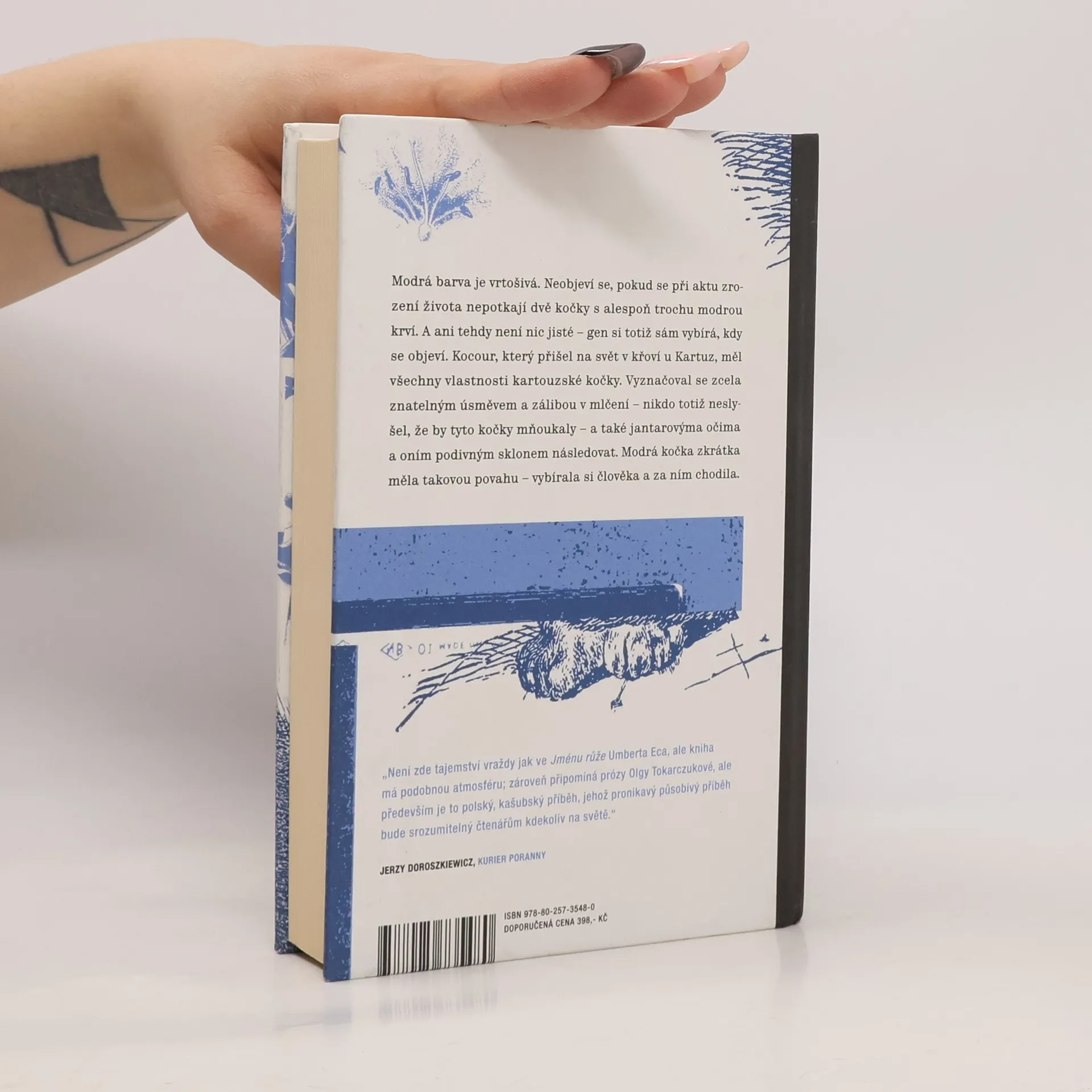 Nový román Martyny Bundy, autorky oceňovaného debutu Bezcitnost, zachovává epičnost vyprávění a nepostrádá ani výrazné postavy, které se tentokrát pohybují v časovém oblouku sedmi století na území mezi kašubskými jezery. Prolínají se zde světy sakrální a světské, spiritualita s racionálnem, osud postav je tiše sledován modrými kočkami, které ochraňují a hřejí ty, kteří to potřebují. Mnohovrstevnatý román dává život několika různorodým hrdinům, mnichům, jeptiškám, zahaleným tajemstvím, bábám bylinkářkám, silným ženám i chudákům. Druhý román Martyny Bundy jistě potěší milovníky kvalitní literatury a magického realismu. „Není možné přečíst knihu Martyny Bundy a zůstat k ní lhostejný. Jsem si jistá, že každý v ní objeví nějaký prvek, který ho bude zajímat. Ať už dobrodružství hrdinů, historické pozadí, nebo hluboké moudré poselství, které vybízí k zamyšlení.“ Beata Igielska
