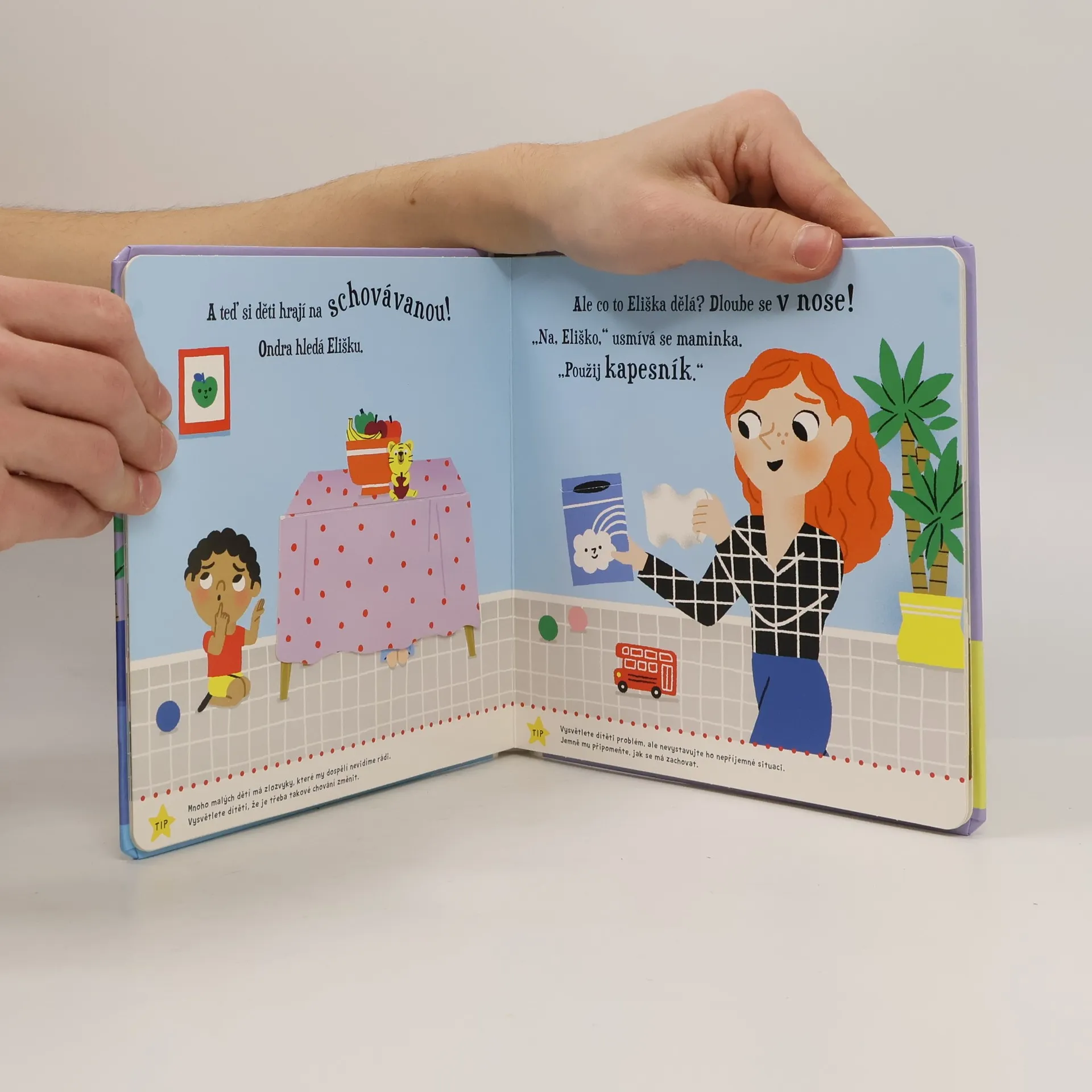 Eliška se moc těší na svého kamaráda Ondru. Umí už návštěvu přivítat? Umí se s kamarádem podělit o hračky? S pomocí této knihy můžete učit své dítě, jak být slušný. Kniha plná pohyblivých prvků obsahuje na každé dvoustraně radu pro rodiče. Umět poděkovat, o něco požádat, odnaučovat se zlozvyky, podělit se a být milý na návštěvu patří mezi základy slušného chování. Začít si je osvojovat může dítě třeba hned teď.
