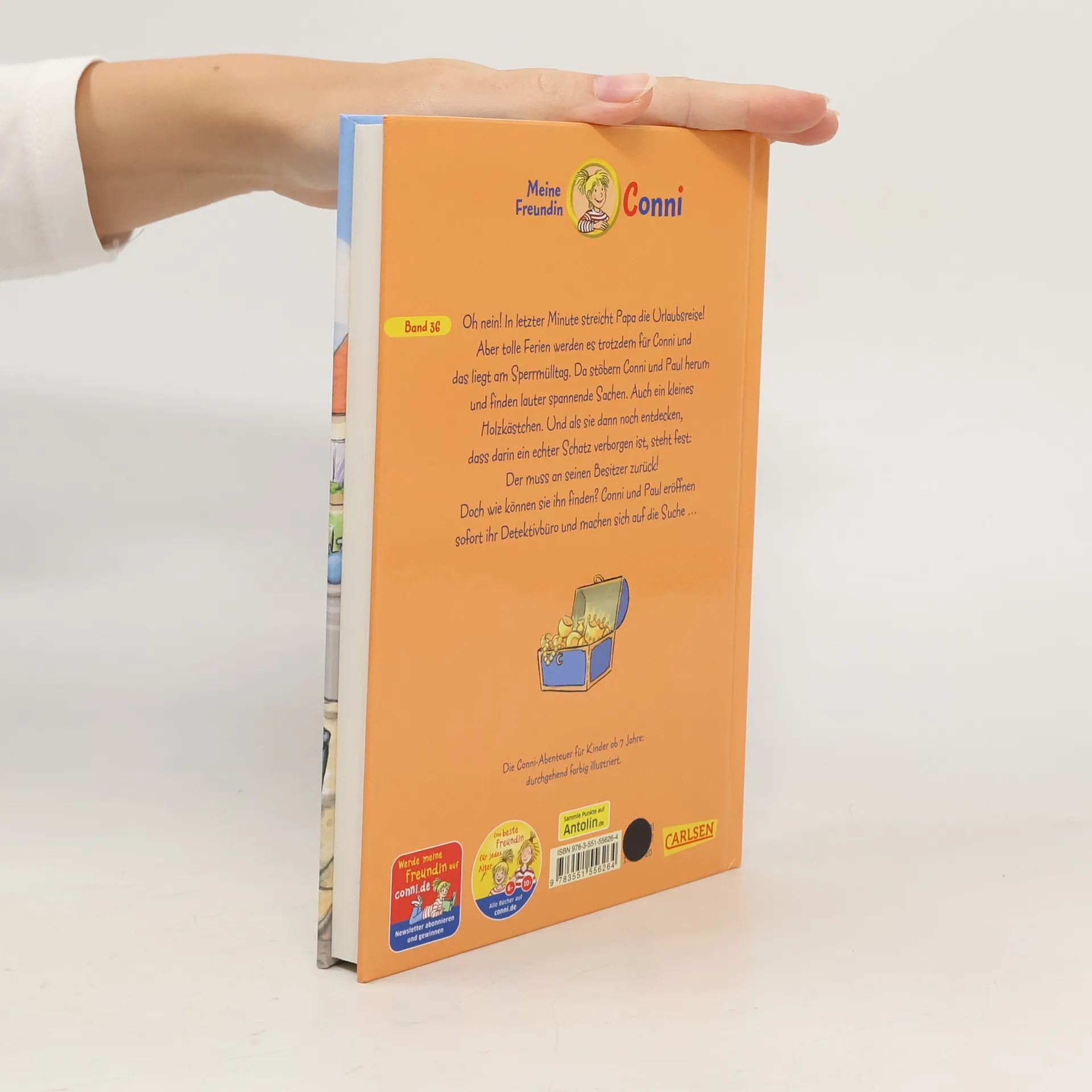 ***Ein richtiger Schatz für alle Conni-Fans!***Oh nein! In letzter Minute streicht Papa die Urlaubsreise! Conni ist ganz unglücklich. Dass es trotzdem tolle Ferien werden, liegt am Sperrmülltag. Da stöbern Conni und Paul herum und finden lauter spannende Sachen. Wie zum Beispiel ein kleines Holzkästchen. Als sie dann auch noch entdecken, dass darin ein Schatz verborgen ist, steht Der muss an seinen Besitzer zurück! Doch wer ist das wohl? Und wie können sie ihn finden? Conni und Paul eröffnen sofort ihr Detektivbüro und machen sich auf die Suche …Die CONNI-ERZÄHLBÄ Spannender Conni-Lesespaß als E-Book direkt für zu Hause!
