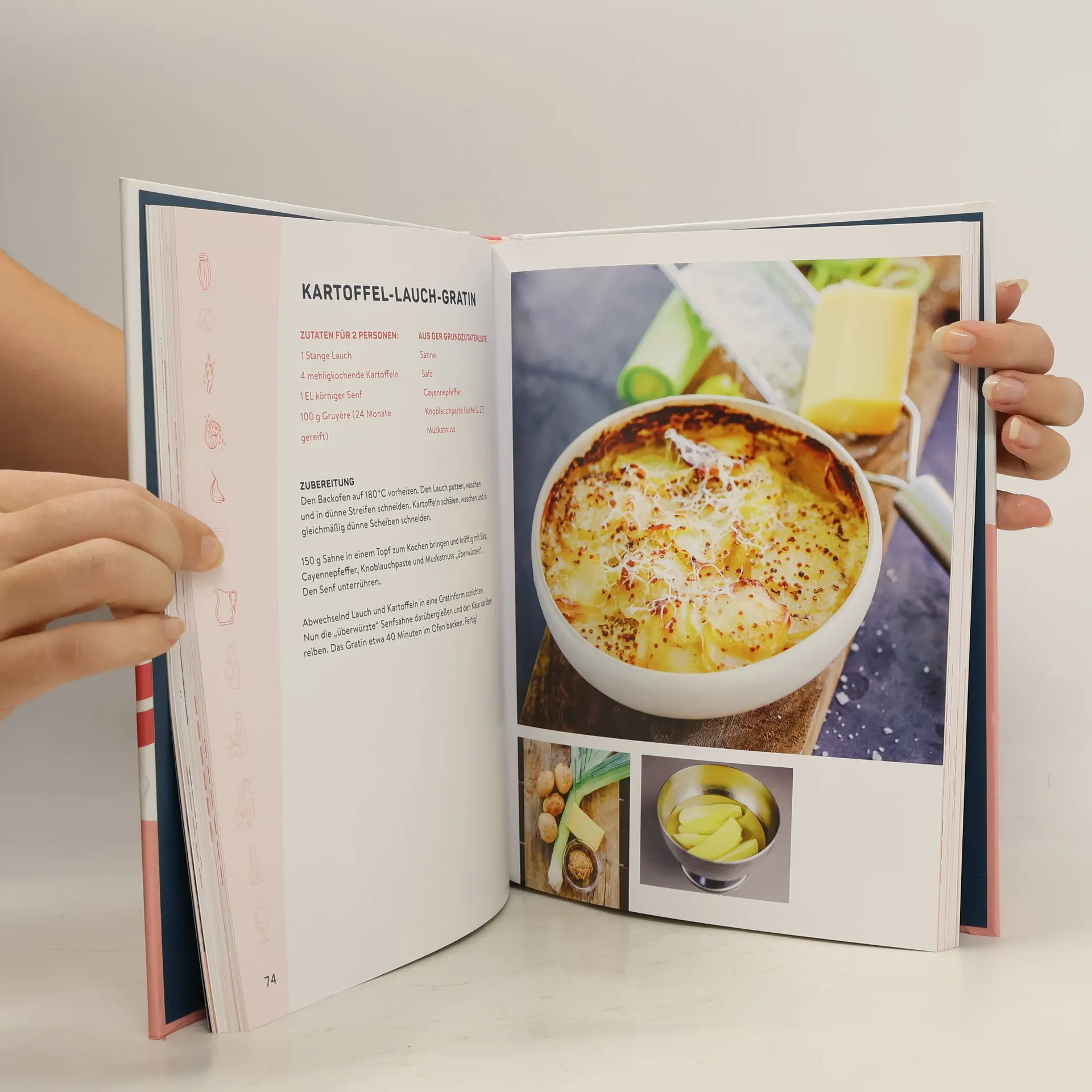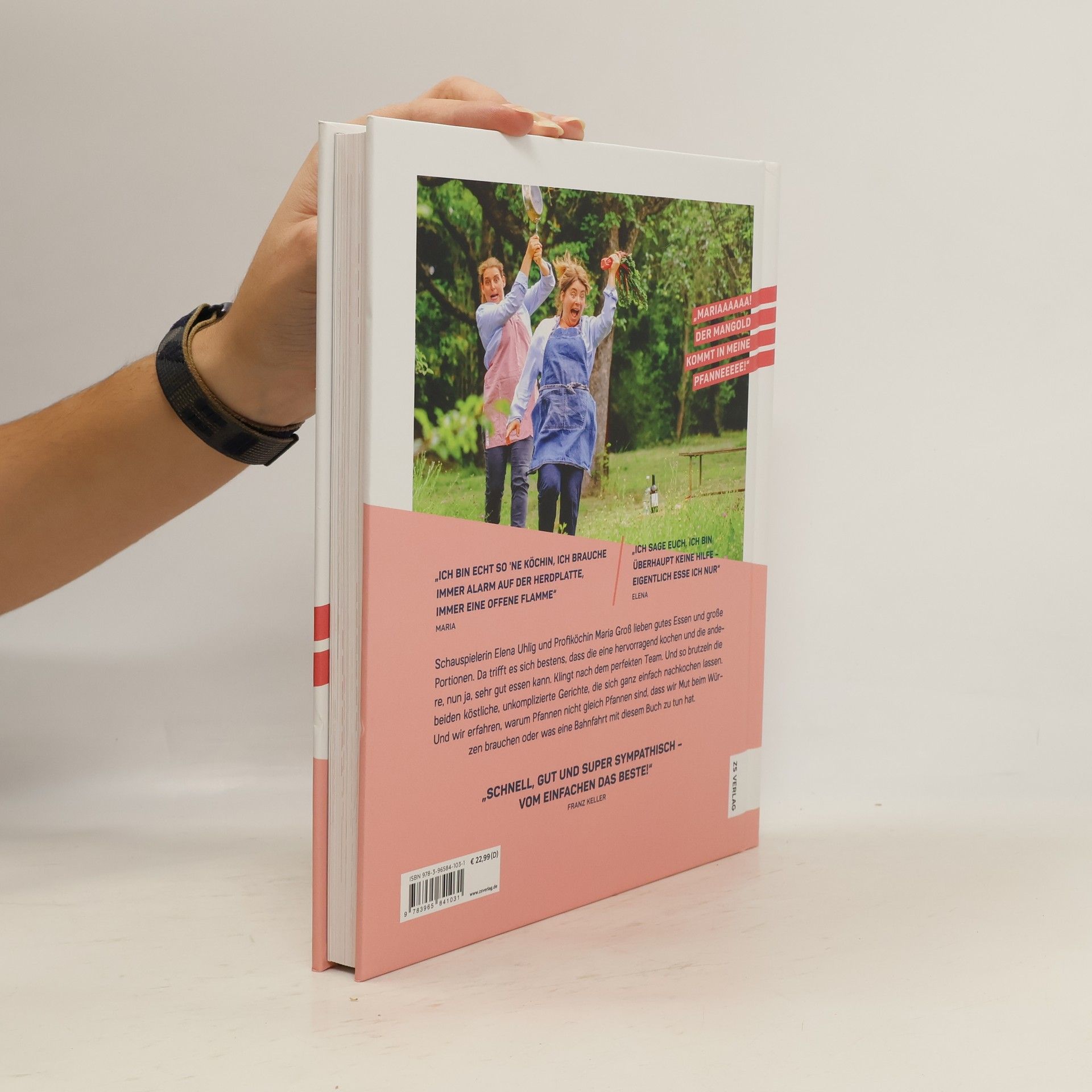 Schauspielerin Elena Uhlig und Spitzenköchin Maria Groß lieben gutes Essen und große Portionen. Da ist es gut, dass die eine hervorragend kochen und die andere, nun ja, gut essen kann. Klingt nach einem perfekten Team – mit genialen Koch-Hacks, einfacher saisonaler Alltagsküche und viel Spaß am Ratschen. Die beiden nehmen kein Blatt vor den Mund und unterhalten ihre Zuhörer mit Anekdoten zu den Gerichten und allerhand Lebensweisheiten. Die lockere Atmosphäre des Podcasts wird "eingefangen" und das Buch mit viel Persönlichkeit und Herz gestaltet. Vor allem sind die Rezept-Seiten mit Leben gefüllt in Form von Interviews (z.B. "Was kann ein Laie vom Profi lernen – und andersrum?"), Making-of-Fotos und Einblicken in den Podcast-Alltag. etwa 40 regionale, saisonale und unkonventionelle Rezepte, die schmecken – inklusive Einkaufslisten, Zubereitungsschritten und wichtigen Tipps für den Leser.Fett als Geschmacksträger spielt bei Maria Groß in der Küche eine wichtige Rolle. Denn Essen muss schmecken und es wird nicht an den guten Zutaten gespart! Da wird eine Prise Zucker schnell zum Schauer und bei einem Schuss Sahne wandert der halbe Becher ins Gericht. Kochen muss Spaß machen und Von Senfeiern mit Blattspinat und Dill über Spargelsalat mit Frischkäse bis hin zu Rehfilet und zweierlei vom Sellerie – Marias Küche feiert die Regionalität und den guten Geschmack.