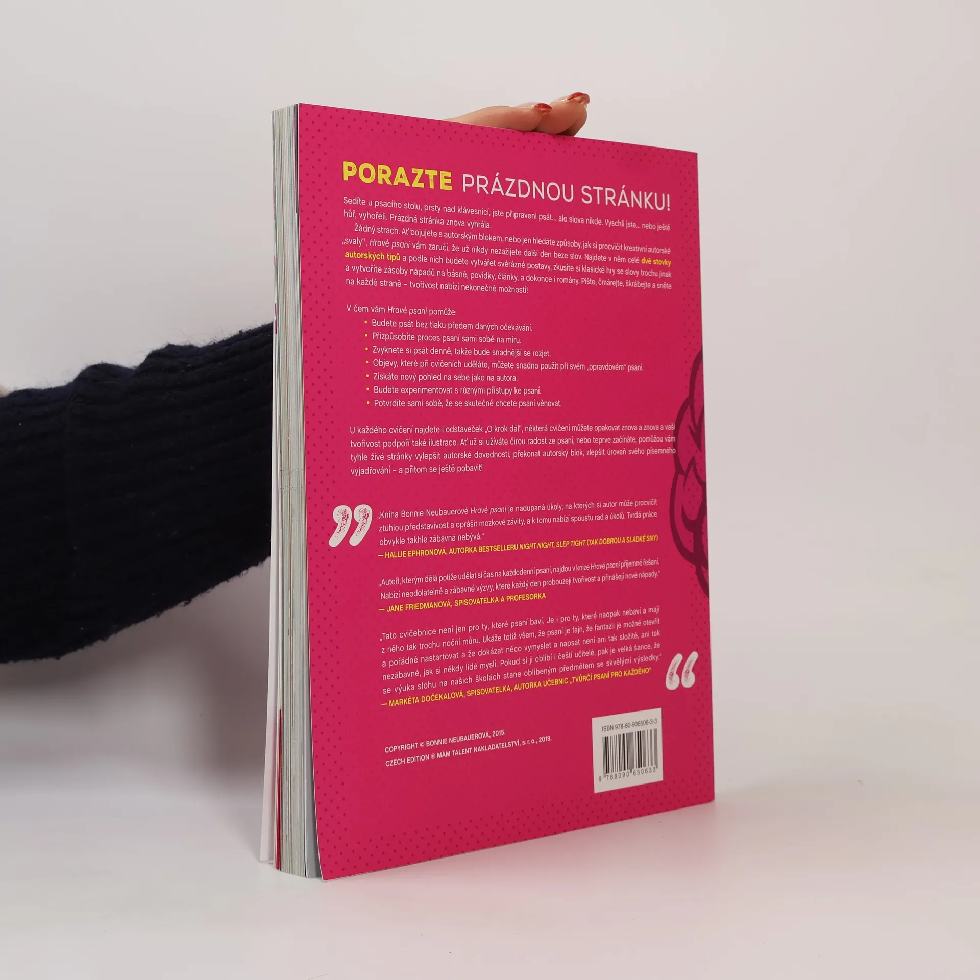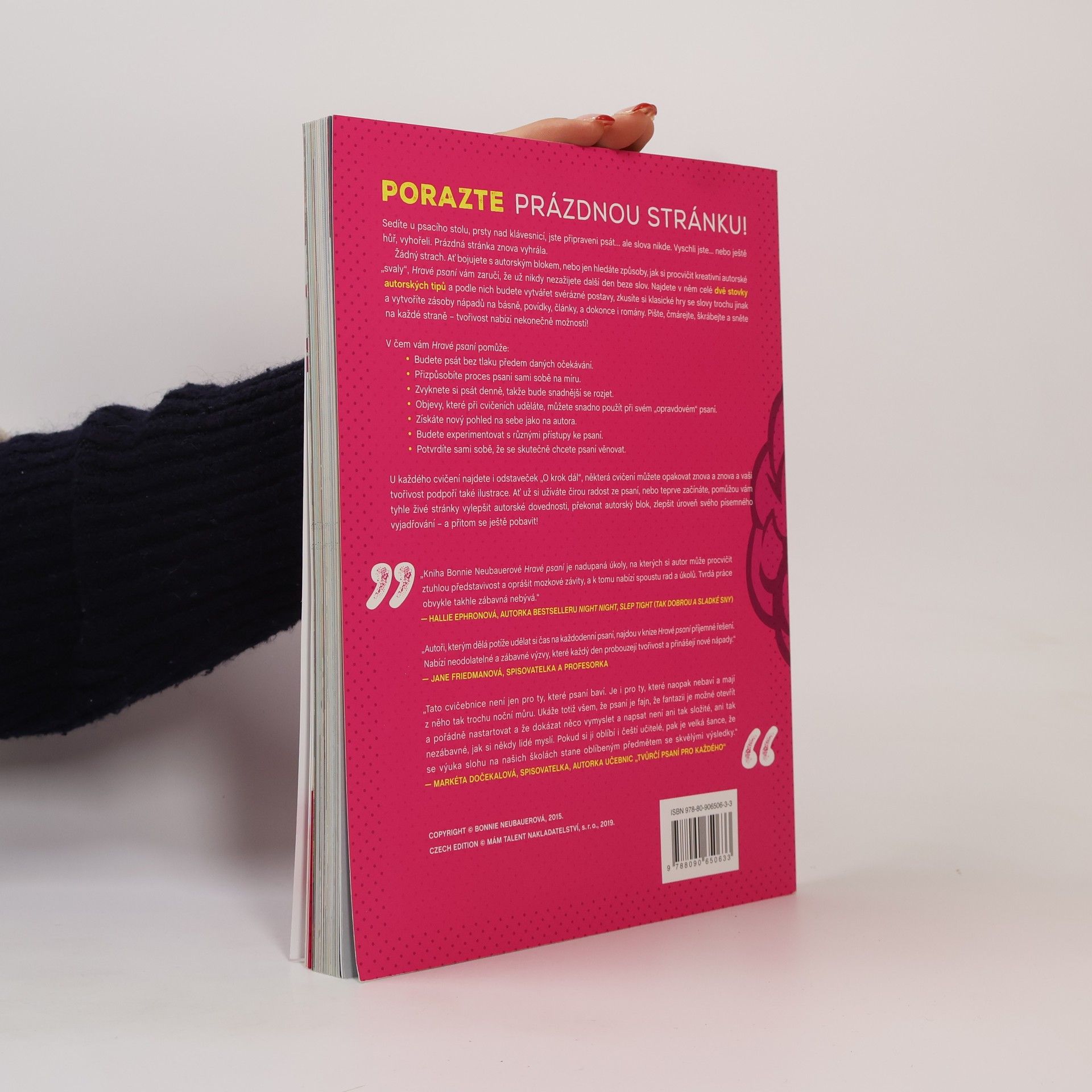 Sedíte u psacího stolu, prsty nad klávesnicí, jste připraveni psát… ale slova nikde. Vyschli jste… nebo ještě hůř, vyhořeli. Prázdná stránka znova vyhrála. Žádný strach. Ať bojujete se spisovatelským blokem, nebo jen hledáte způsoby, jak si procvičit kreativní autorské „svaly“, HRAVÉ PSANÍ vám zaručí, že už nikdy nezažijete další den beze slov. Najdete v něm celé dvě stovky autorských tipů a podle nich budete vytvářet svérázné postavy, zkusíte si klasické hry se slovy trochu jinak a vytvoříte zásoby nápadů na básně, povídky, články a dokonce i romány. Pište, čmárejte, škrábejte a sněte na každé straně – tvořivost nabízí nekonečně možností! V čem vám HRAVÉ PSANÍ pomůže: Budete psát bez tlaku předem daných očekávání. Přizpůsobíte proces psaní sami sobě na míru. Zvyknete si psát denně, takže bude snadnější se rozjet. Objevy, které při cvičeních uděláte, můžete snadno použít při svém „opravdovém“ psaní. Získáte nový pohled na sebe jako na autora. Budete experimentovat s různými přístupy ke psaní. Potvrdíte sami sobě, že se skutečně chcete psaní věnovat. U každého cvičení najdete i odstaveček „O krok dál“, některá cvičení můžete opakovat znova a znova a vaši tvořivost podpoří také ilustrace. Ať už si užíváte čirou radost ze psaní, nebo teprve začínáte, pomůžou vám tyhle živé stránky vylepšit autorské dovednosti, překonat spisovatelský blok – a přitom se ještě pobavit! Vhodné pro čtenáře od 9 let výše.